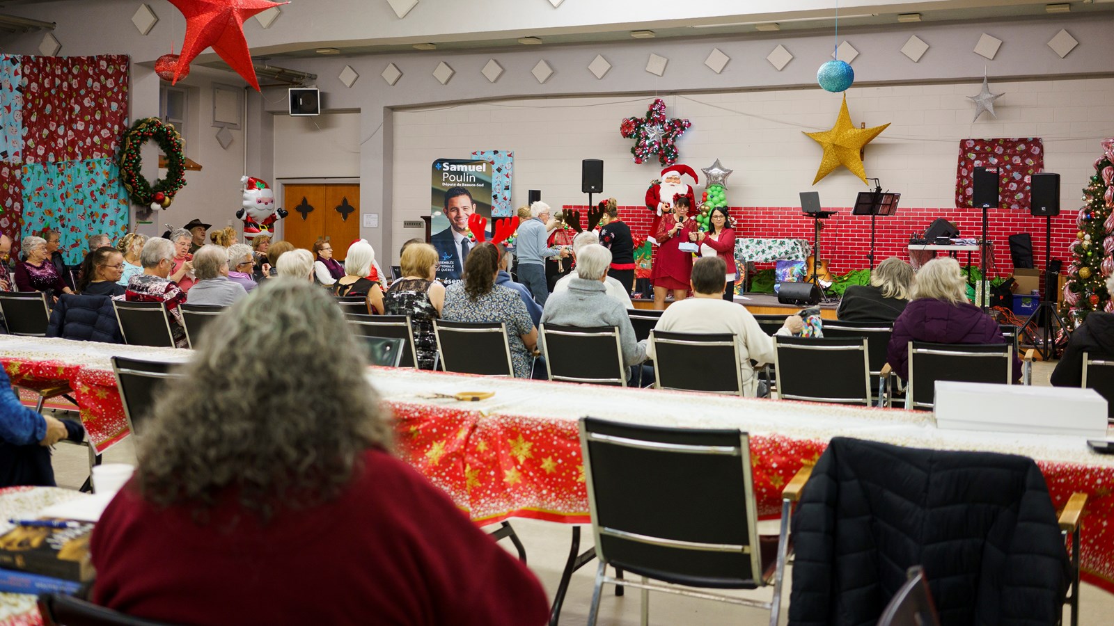 La féérie de Noël et le bonheur régnait au dîner de Noël organisé par l’Association bénévole Beauce-Sartigan (ABBS), qui se tenait hier après-midi au sous-sol de l’église Assomption à Saint-Georges.