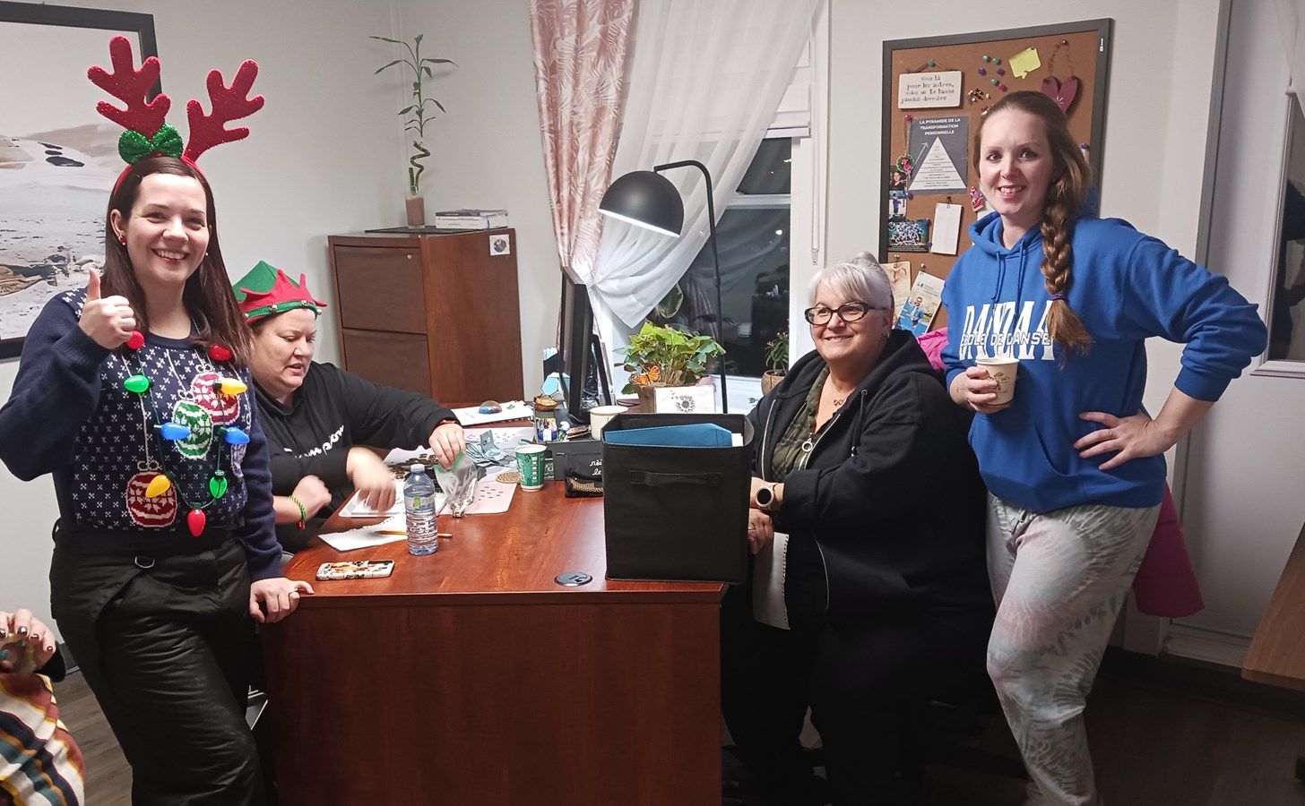 Les choristes bénévoles ont été reçus aux locaux de l’organisme avec des breuvages chauds ainsi que des collations les deux soirs après leur tournée. En plus de faire connaissance, c'était aussi l'occasion pour l'organisme de témoigner sa gratitude pour l'implication des bénévoles ainsi que pour les dons recueillis.
