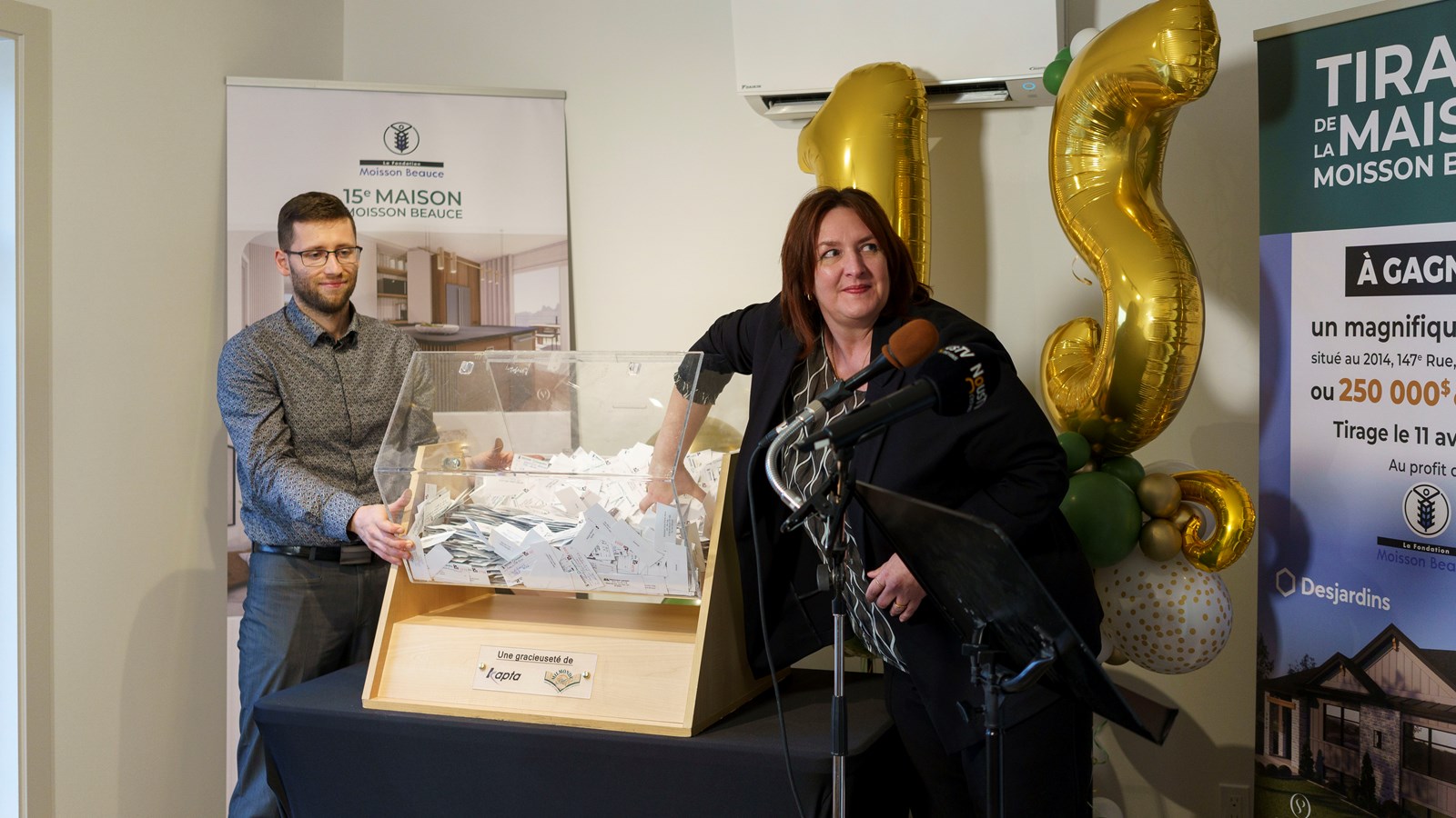 C’est ce soir à la Maison Moisson Beauce, sous la surveillance de la firme comptable Blanchette Vachon s.e.n.c.r.l., que s’est déroulé le tirage en présence de la Fondation Moisson Beauce, de Desjardins, de Constructions Robert Bernard et de Signé SP. Contacté à l'issue du tirage, monsieur Labrecque était très surpris et très heureux. « Ce n’est pas une joke?! » a-t-il lancé à Marie Champagne, directrice générale de Moisson Beauce. Il s'est ensuite rendu sur place avec son collègue.