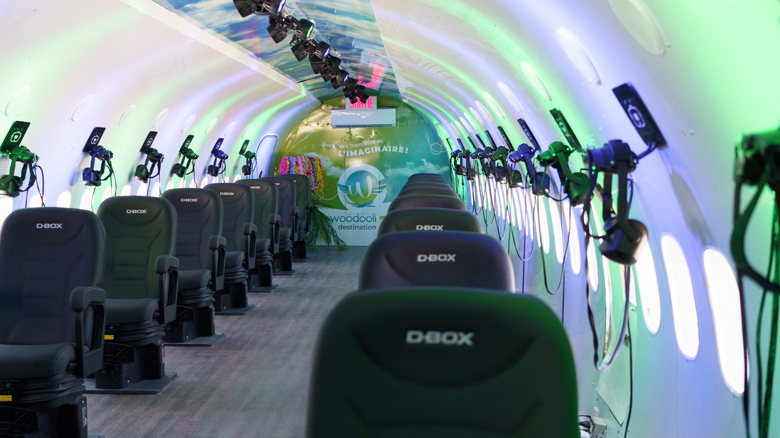 L’entreprise a collaboré avec la marque québécoise Triotech, qui conçoit, développe et fabrique des attractions et des manèges pour l'industrie des loisirs et du divertissement partout dans le monde. En tout, 24 sièges et casques VR (réalité virtuelle) uniront leur technologie pour faire vivre le film Around the world de la compagnie Brogent.