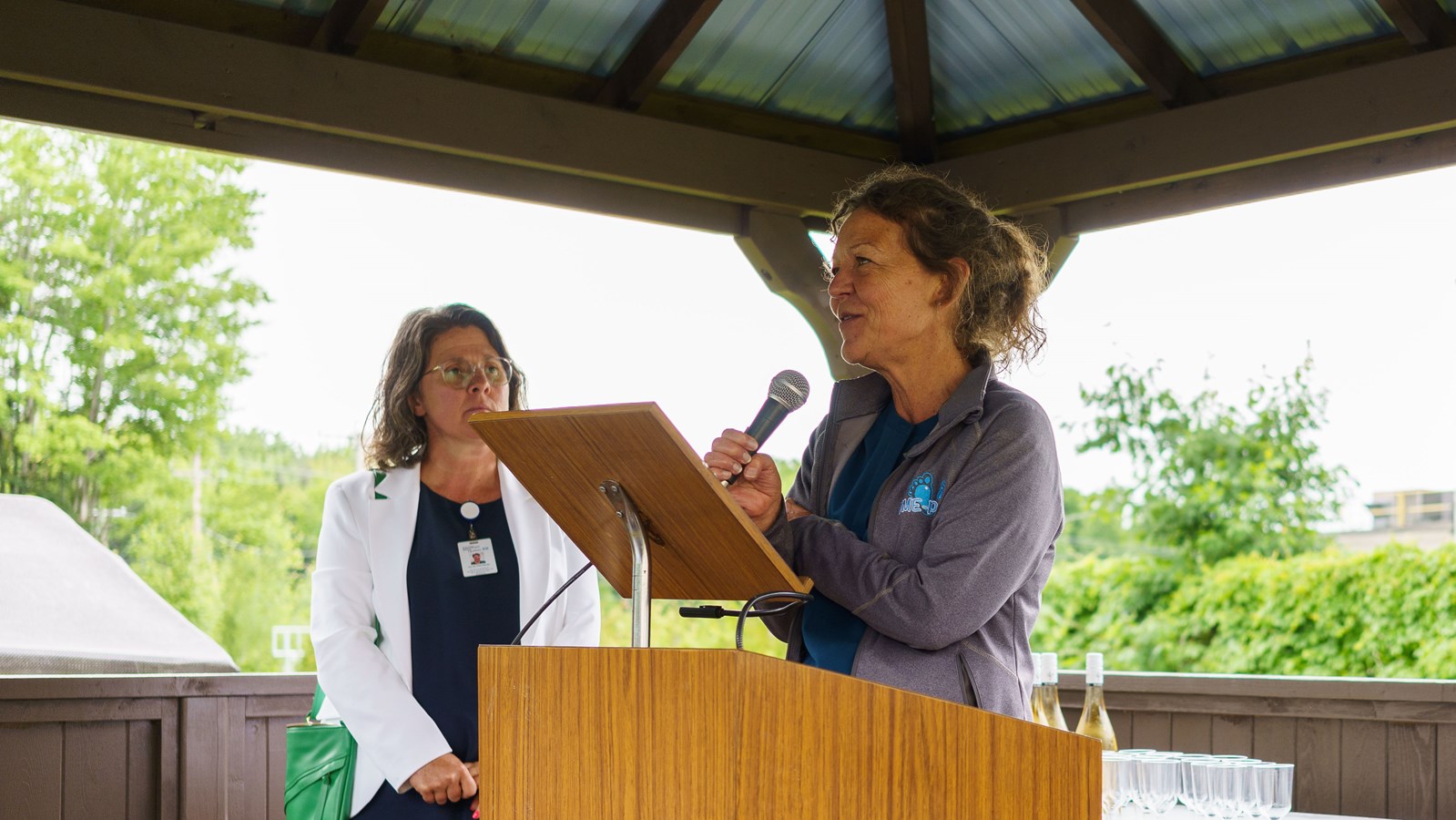 La Fondation santé Beauce-Etchemin, représentée par Manon Veilleux, a participé à hauteur de 350 000$ dans ce projet d'environ un million de dollars. Notons également la contribution de 50 000$ du 24 DH St-Georges Ford qui a servi à l'achat des jeux pour enfants.