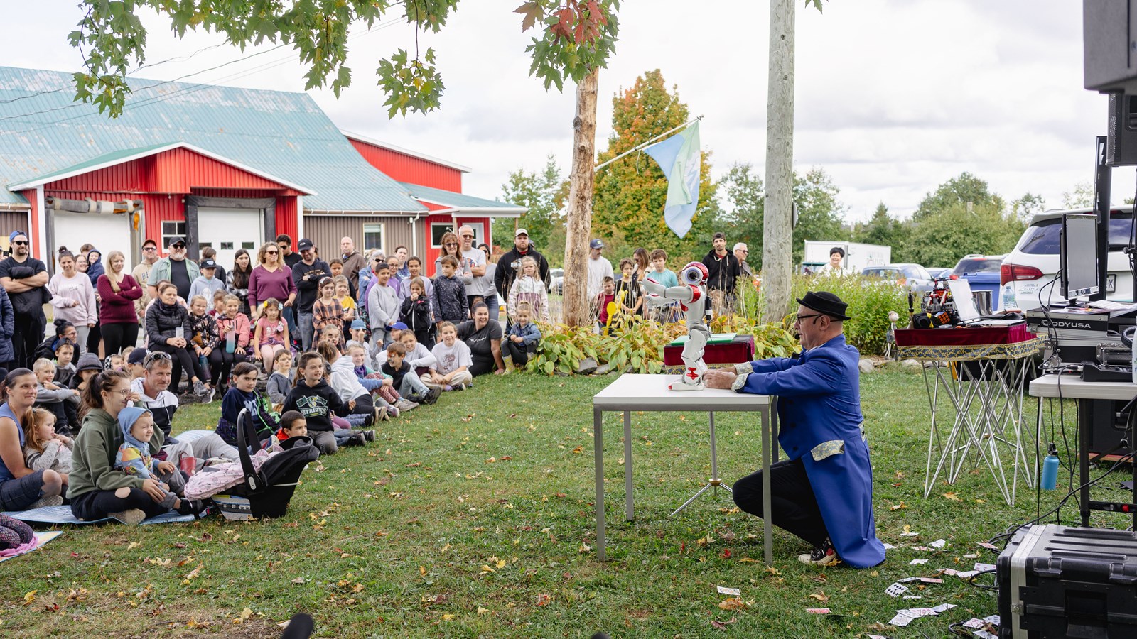 Pour le plaisir des petits et grands, le champion de la magie et de la micromagie, Patrick Reymond a présenté deux spectacles. Il y avait aussi des jeux gonflables, du maquillage pour enfants, de l’animation musicale par DJ Claude Busque et bien sûr, la cueillette de pommes.