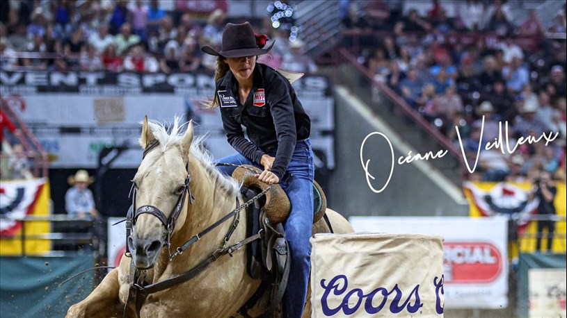 La Beauceronne Océane Veilleux vient de remporter le championnat 2024 des concurrentes recrues, dans les épreuves de courses de baril du circuit professionnel de rodéo international.