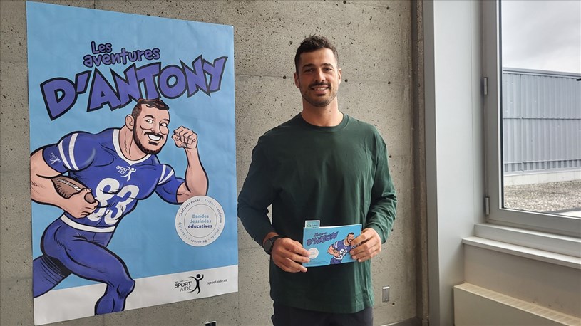 L'ex-joueur de football professionnel de Notre-Dame-des-Pins, Antony Auclair, est le nouvel héros de la toute dernière bande dessinée de l'organisme Sport'Aide.
