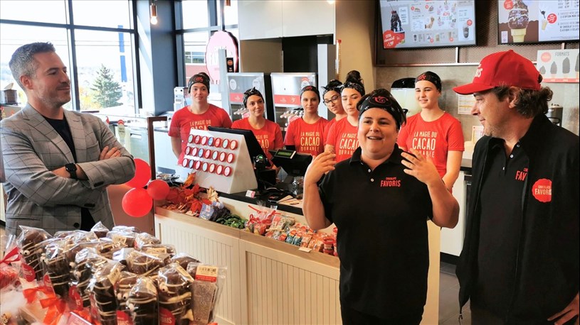 La chocolaterie-glacerie-confiserie Chocolats Favoris a inauguré aujourd'hui un nouveau comptoir au 14725, du boulevard Lacroix à Saint-Georges, qui comprendra un service au volant (en opération dès décembre), ce qui constitue une première pour la bannière.