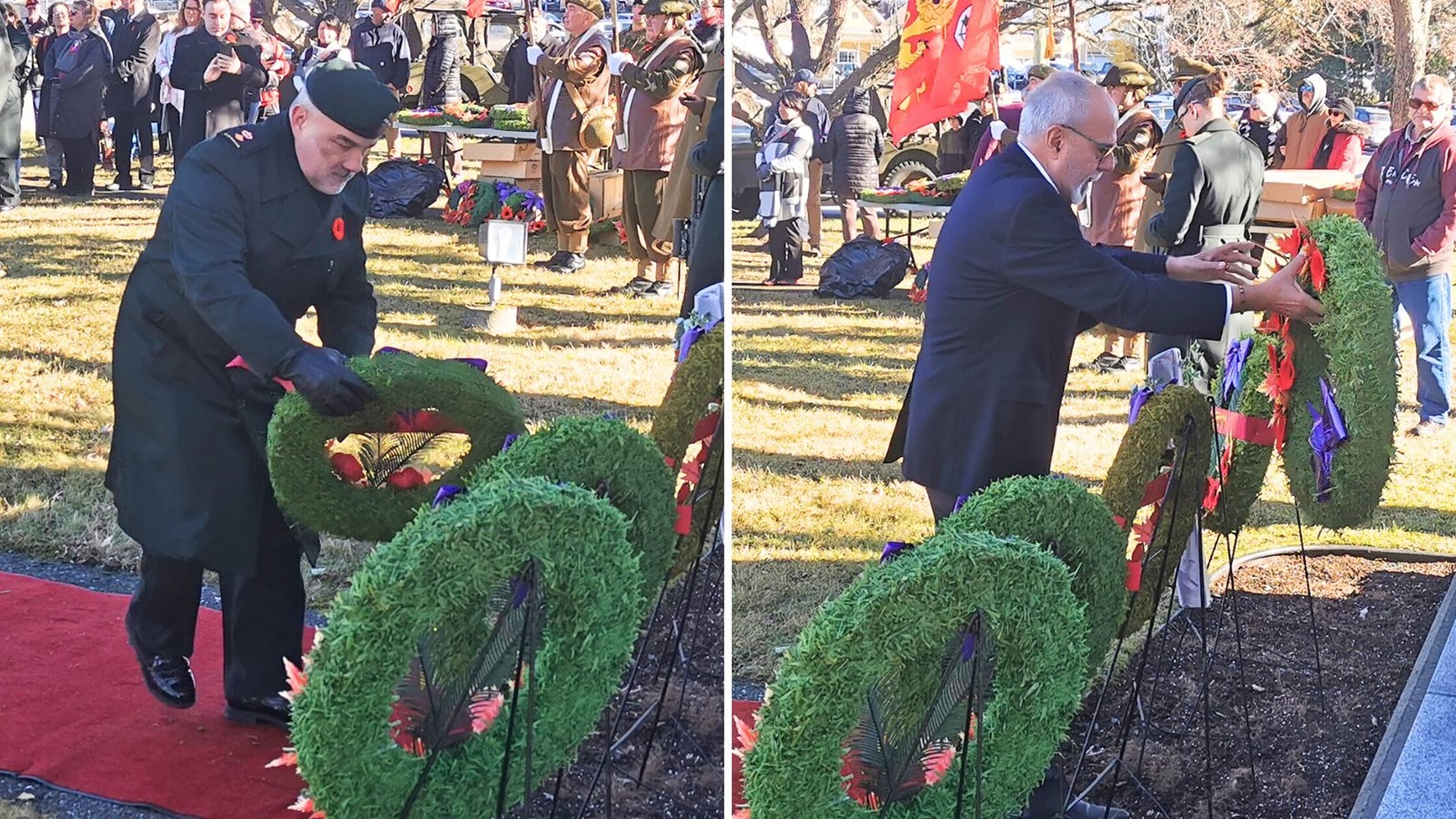 Dépôt d"une couronne par le commandant du Régiment de la Chaudière, le lieutenant-colonel Bruno Gilbert, et le maire de Saint-Georges, Claude Morin.