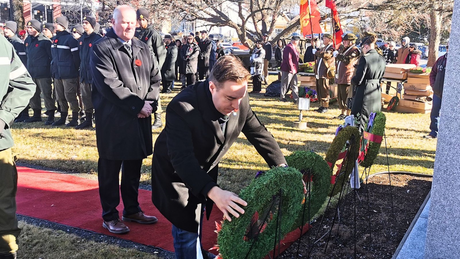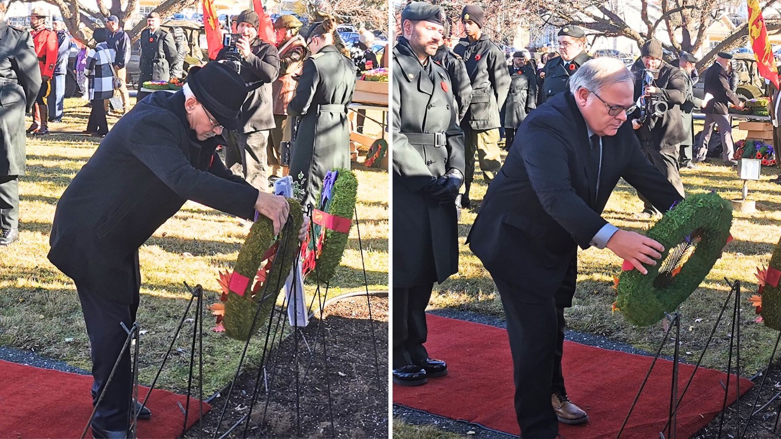 Dépôt d"une couronne par le député fédéral de Beauce, Richard Lehoux et le député de Beauce-Nord, Luc Provençal.