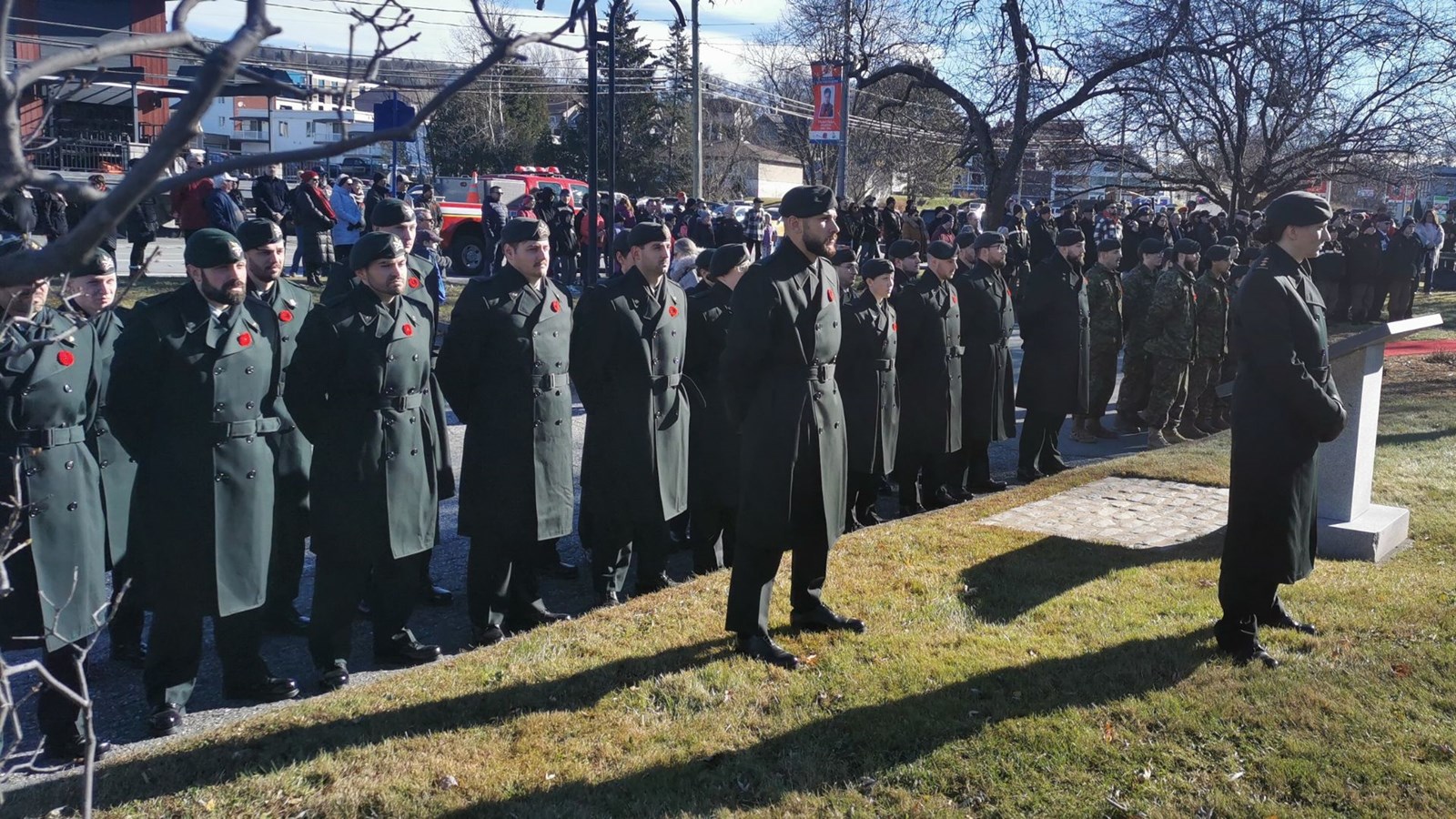 Quelque 80 cadets, provenant des Corps de Beauceville, Lac-Etchemin et Saint-Georges, ainsi qu'une trentaine de membres du Régiment de la Chaudière, ont participé à la célébration solennelle, devant une vingtaine de vétérans de la région.