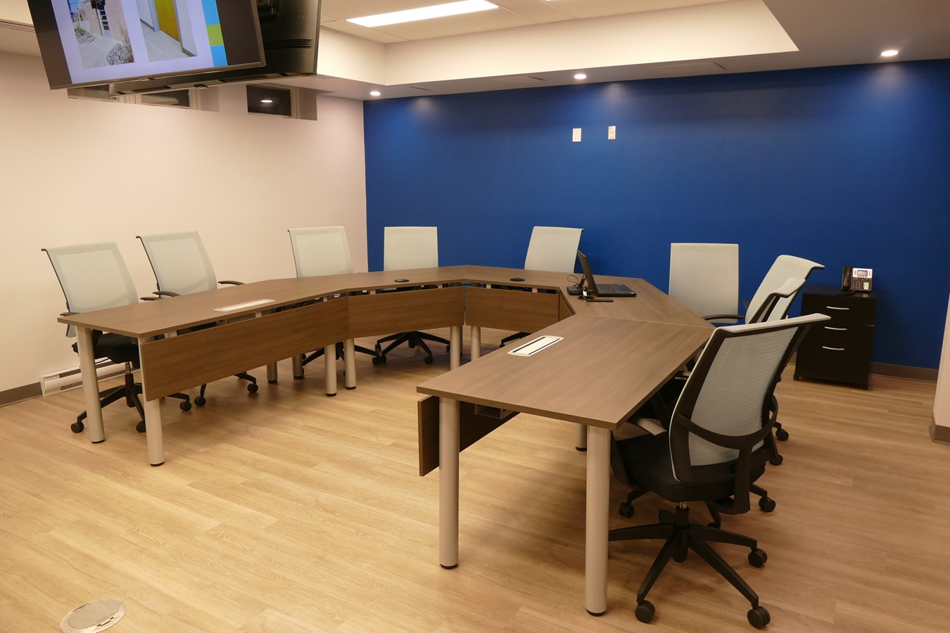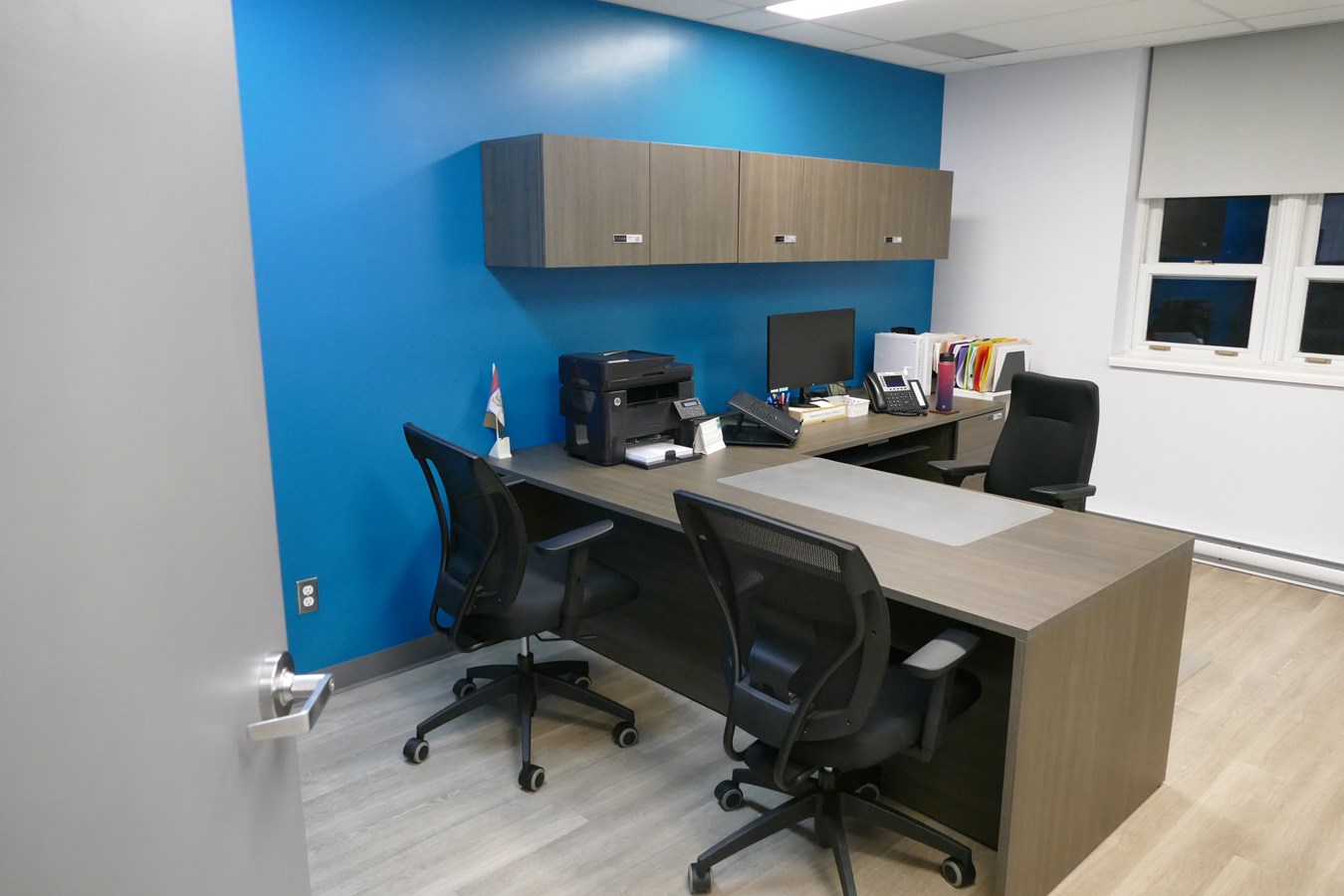 À l'entrée, il était aussi possible de découvrir la dizaine de bureaux fermés et insonorisés, avec un tout nouvel accueil. Une nouvelle salle de conférence est désormais disponible et la salle du conseil a été complètement repensée pour accueillir près de 60 personnes.
