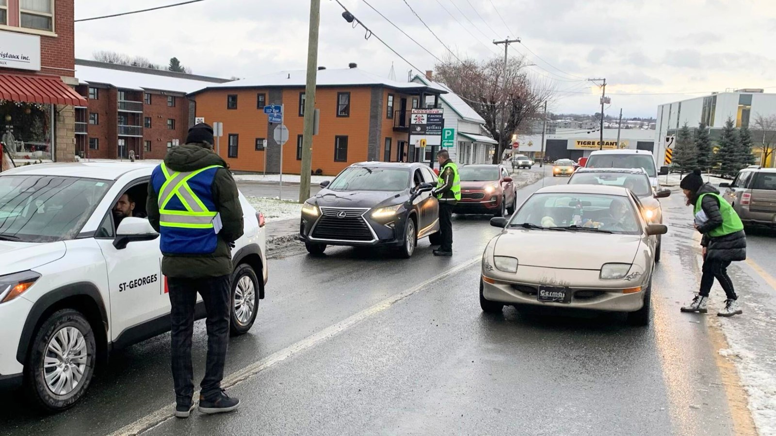Dans le cadre des 12 jours d'action pour l'élimination de la violence faite aux femmes, la Sûreté du Québec a organisé aujourd’hui une opération concertée de sensibilisation à la violence conjugale, à différentes intersections de rues à Saint-Georges et à Sainte-Marie.