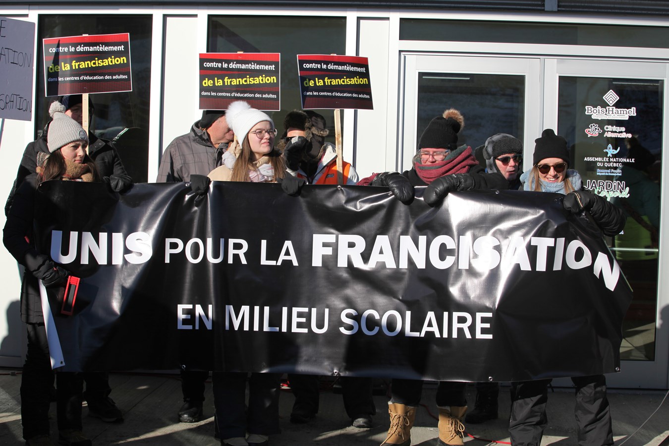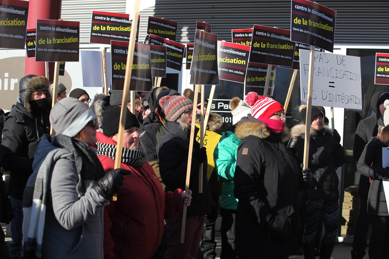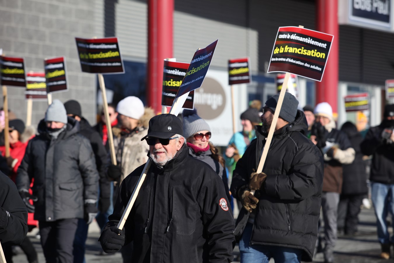 Entre 150 et 200 personnes se sont rassemblées ce samedi 7 décembre à Saint-Georges pour protester contre la fermeture des classes de francisation dans les centres d’éducation aux adultes de la région Beauce-Etchemin.