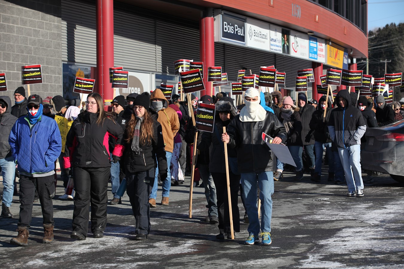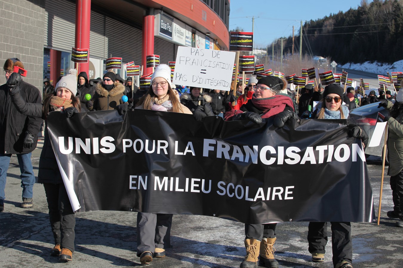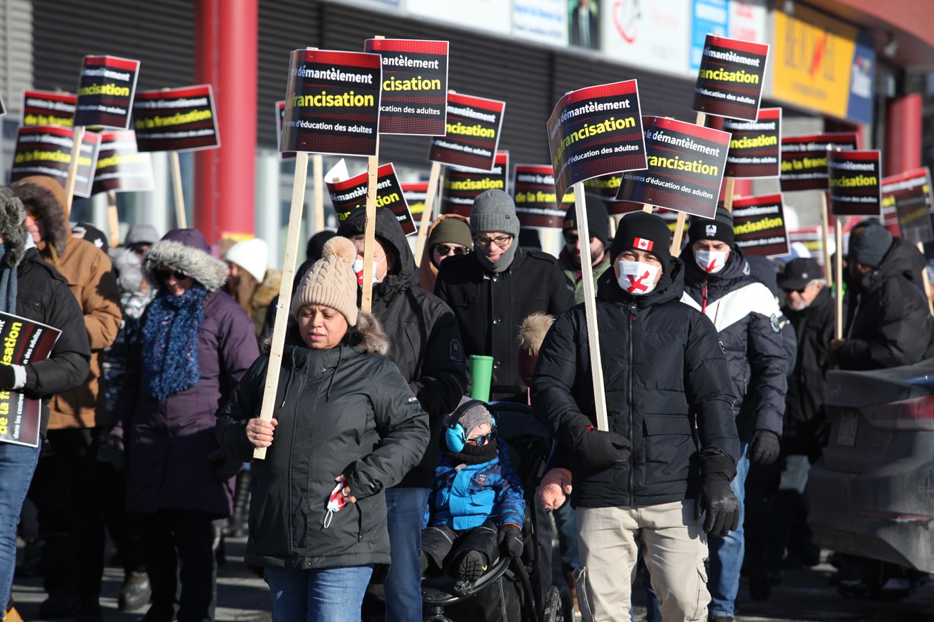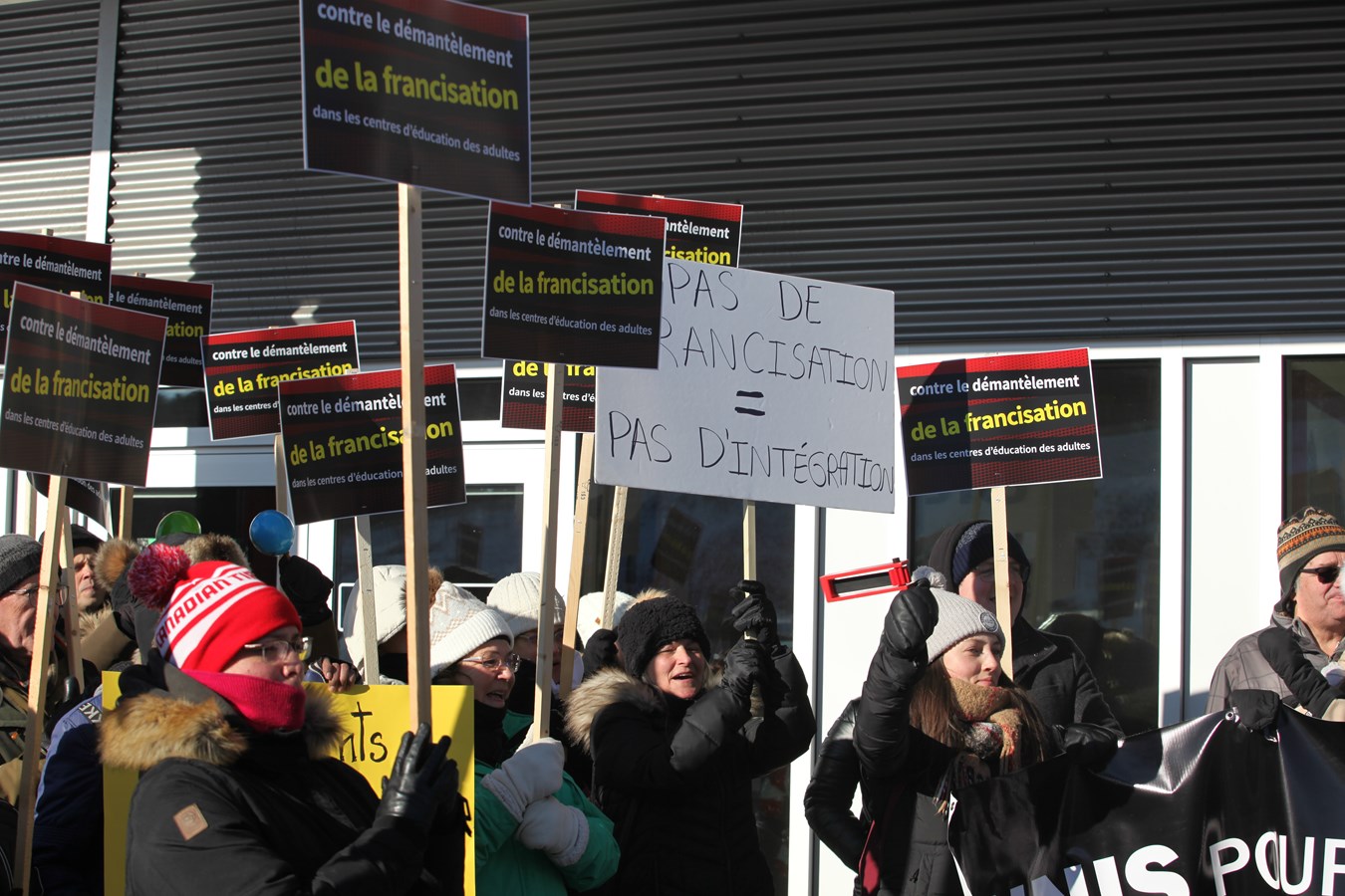 Entre 150 et 200 personnes se sont rassemblées ce samedi 7 décembre à Saint-Georges pour protester contre la fermeture des classes de francisation dans les centres d’éducation aux adultes de la région Beauce-Etchemin.
