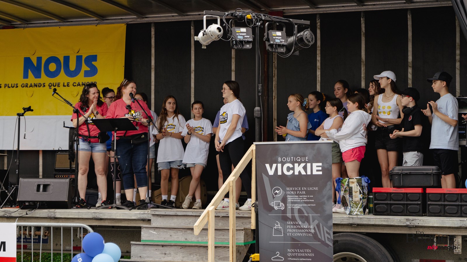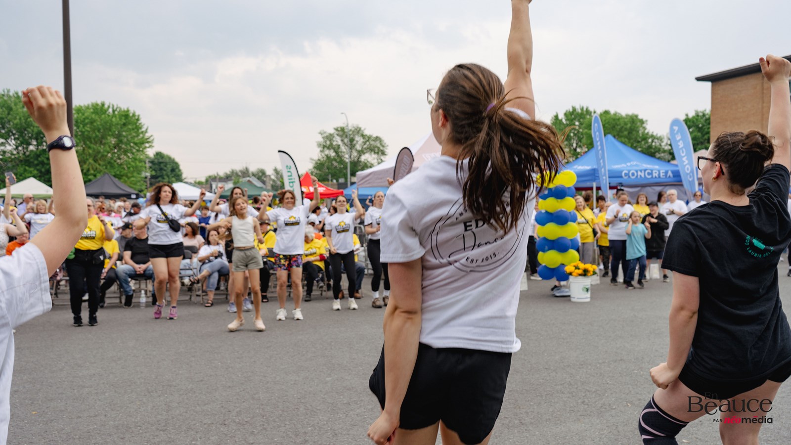Suite à la remise des prix, les participants se sont échauffés et le départ a été lancé. Marie-Andrée Larochelle, mère du désormais célèbre pianiste Nathan Loignon, a procédé à la coupe du ruban et se trouvait en tête du départ pour le Tour de l’espoir, un moment inaugural dédié aux Participants d’espoir, c’est-à-dire les personnes ayant une expérience de cancer ou présentant un risque accru d’en développer un.