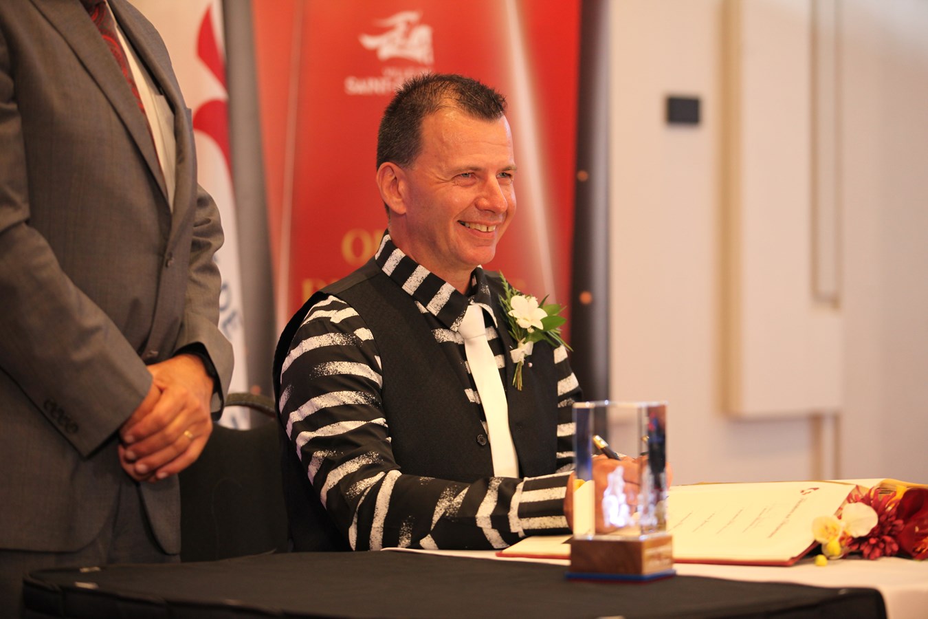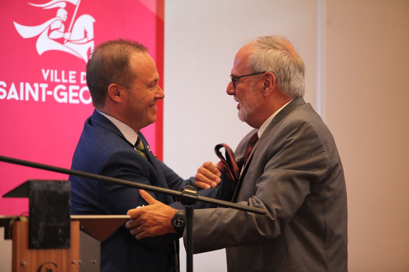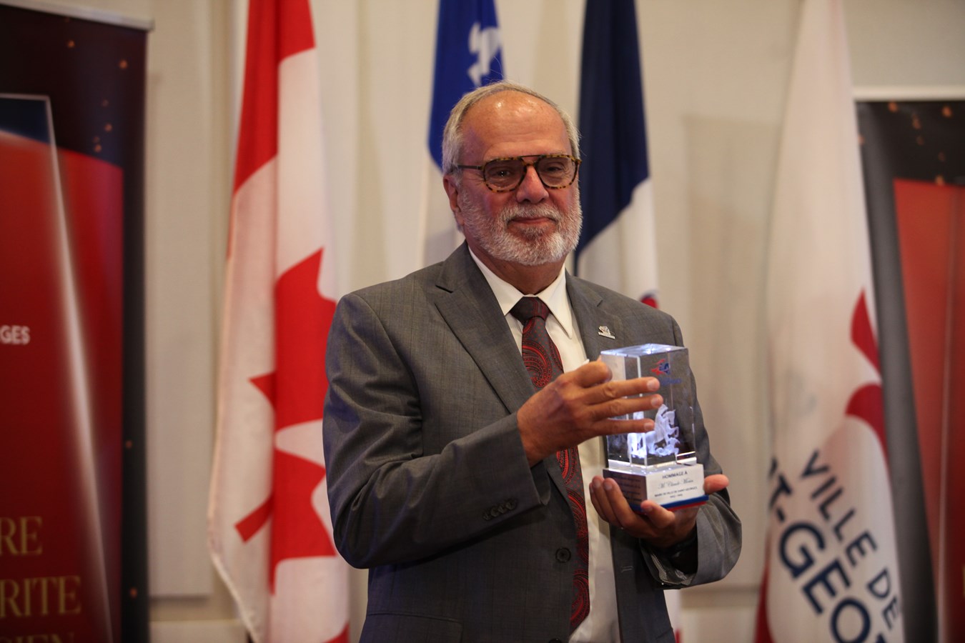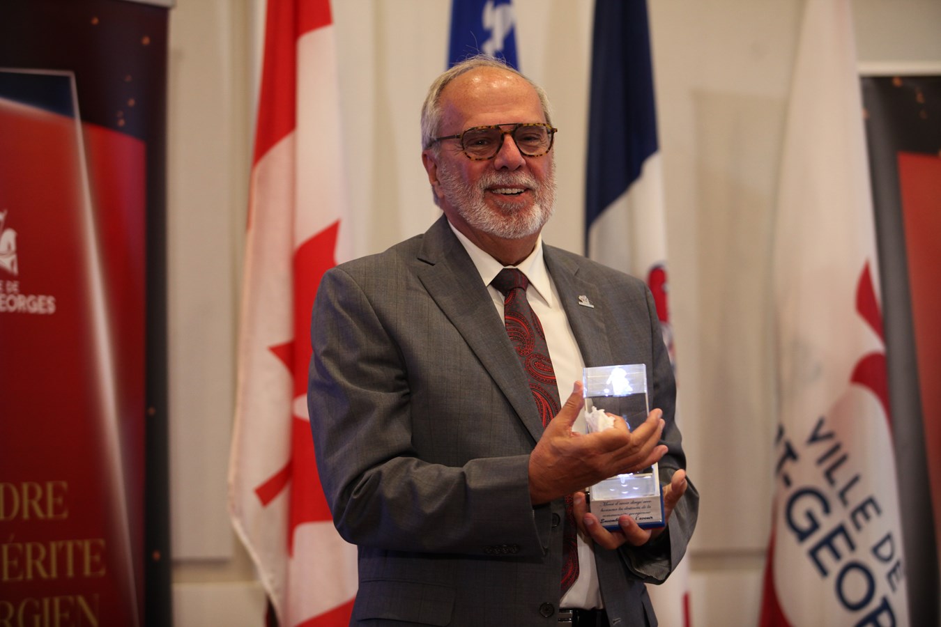 Pour couronner l’hommage, ses deux enfants ont fait une apparition surprise afin de l’accompagner et de lui remettre le George de cristal. Très touché, le maire a terminé en s’adressant aux nombreuses personnes dans la salle : « Cette récompense, je la partage avec vous tous, c’est aussi grâce à vous. »