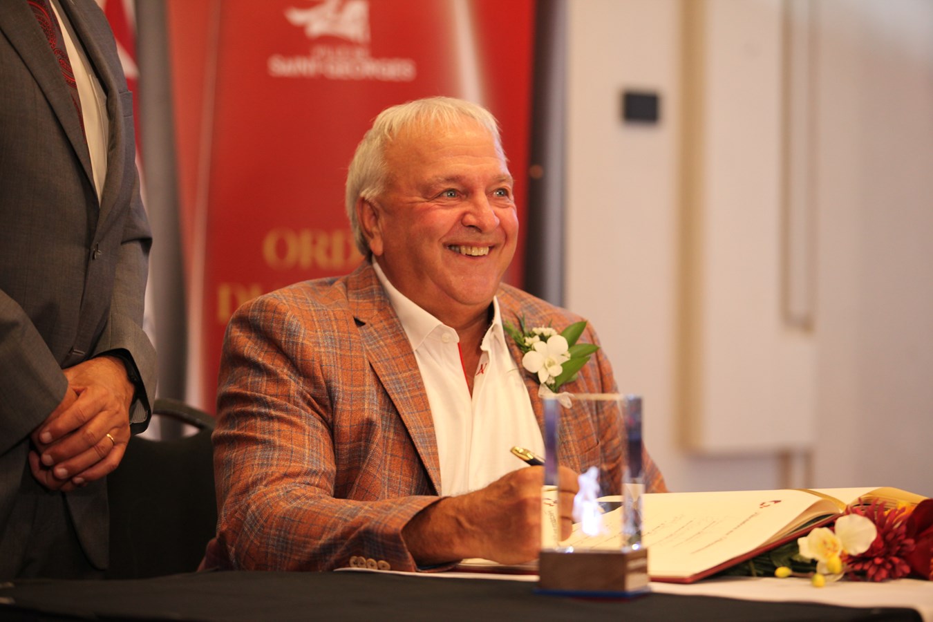 En effet, c’était pour lui la dernière occasion de remettre l’Ordre du Mérite georgien, étant donné qu’il quittera son poste de premier magistrat après 12 ans au service de la Ville de Saint-Georges en novembre prochain.