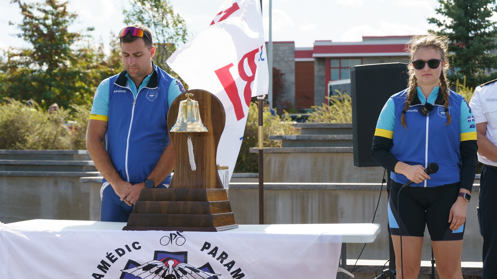 Cette année, une pensée toute particulière a été dédiée à Olivier Blouin, décédé lors de l’écrasement d’un hélicoptère d’Airmedic le 20 juin dernier. Depuis 1989, le Québec a perdu quatre paramédics civils et quatre paramédics militaires, parmi les 55 paramédics canadiens ayant perdu la vie en service. Au-delà des risques physiques liés à leur profession, les paramédics sont confrontés régulièrement à des situations laissant parfois d’importantes séquelles psychologiques. Le Tour Paramedic Ride Québec profite de cette mobilisation pour rappeler cet enjeu et porter la voix des intervenants auprès des décideurs publics.