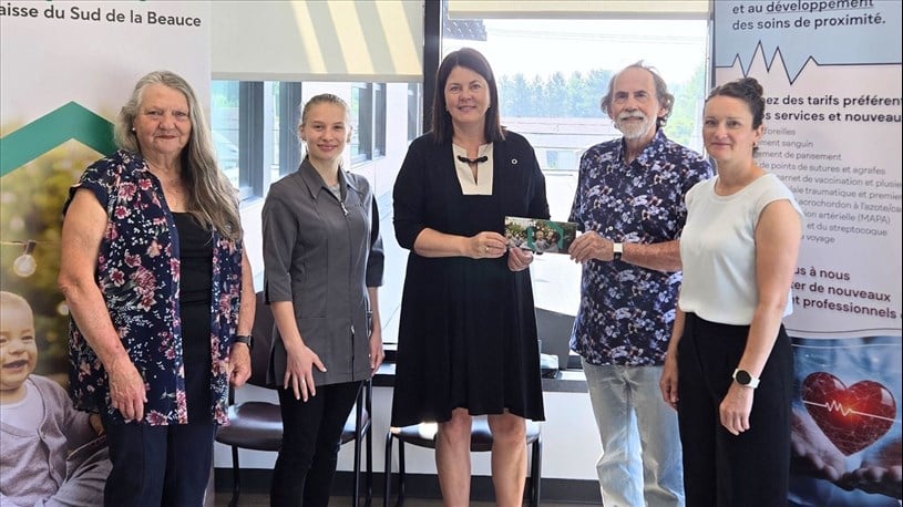 La Caisse Desjardins du Sud de la Beauce vient d'effectuer un don de 20 000 $, en soutien au bon fonctionnement de la Coopérative de santé et de solidarité du sud de la Beauce.