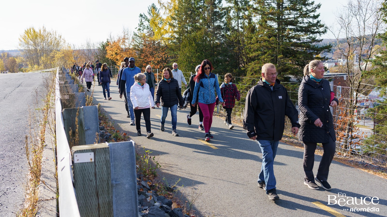 Plus de 500 personnes se sont retrouvées au Parc de l'Île Pozer pour la première édition à Saint-Georges ce samedi matin. Les participants ont pu marcher sur un parcours de 2,5 km ou de 5 km, en famille ou entre amis.