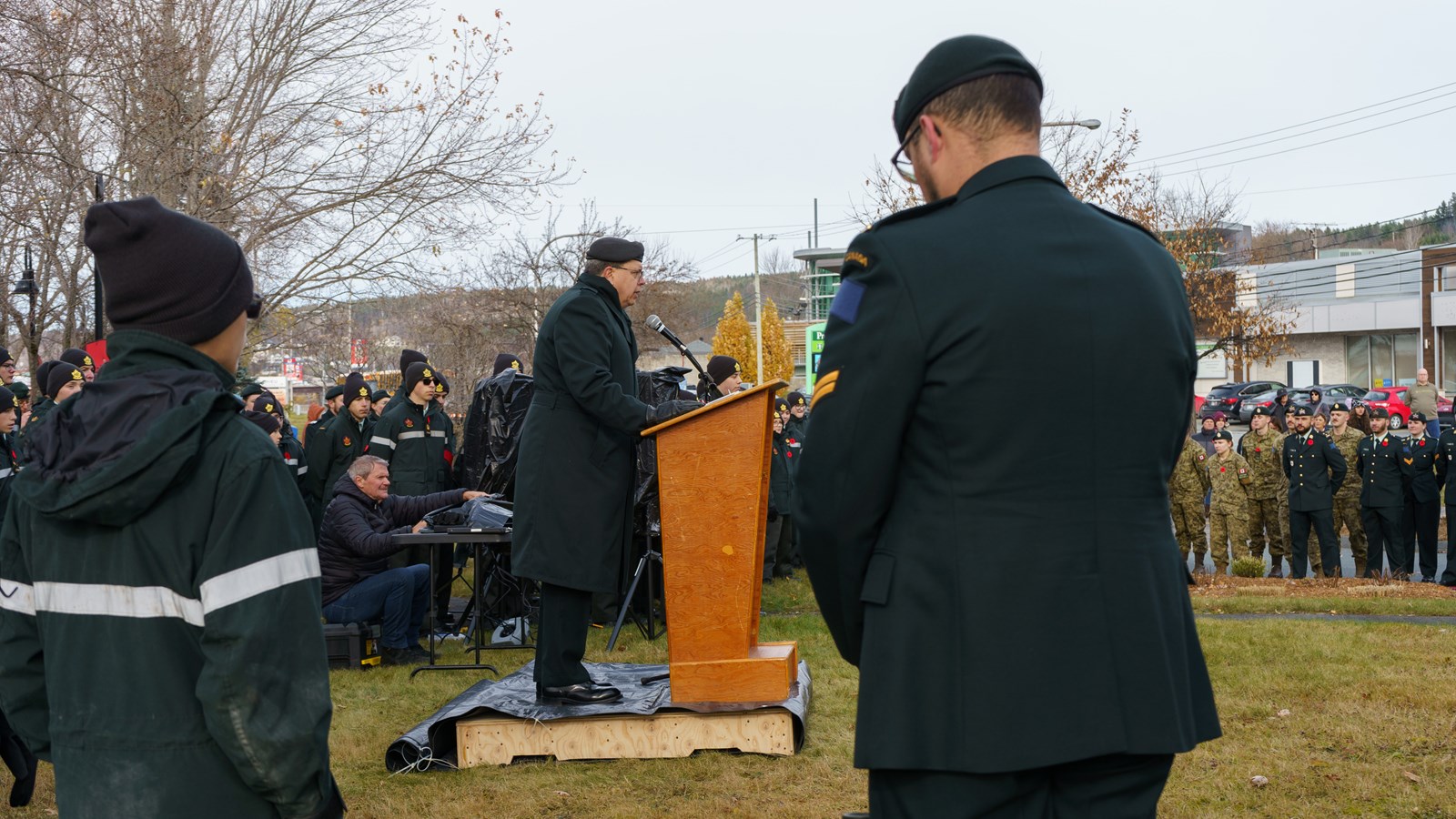 Les cadets se sont adressés également aux personnes présentes pour montrer leur engagement envers le devoir de mémoire. « Nous sommes la dernière génération à pouvoir entendre leur récit, à ressentir leur présence et à apprendre directement d’eux », a mentionné le cadet Hugo Richard, 16 ans. « Mais nous choisissons d’être les premiers à porter leur mémoire avec fierté et conviction. (...) Nous, jeunes cadets, prenons le relais du devoir de mémoire. »