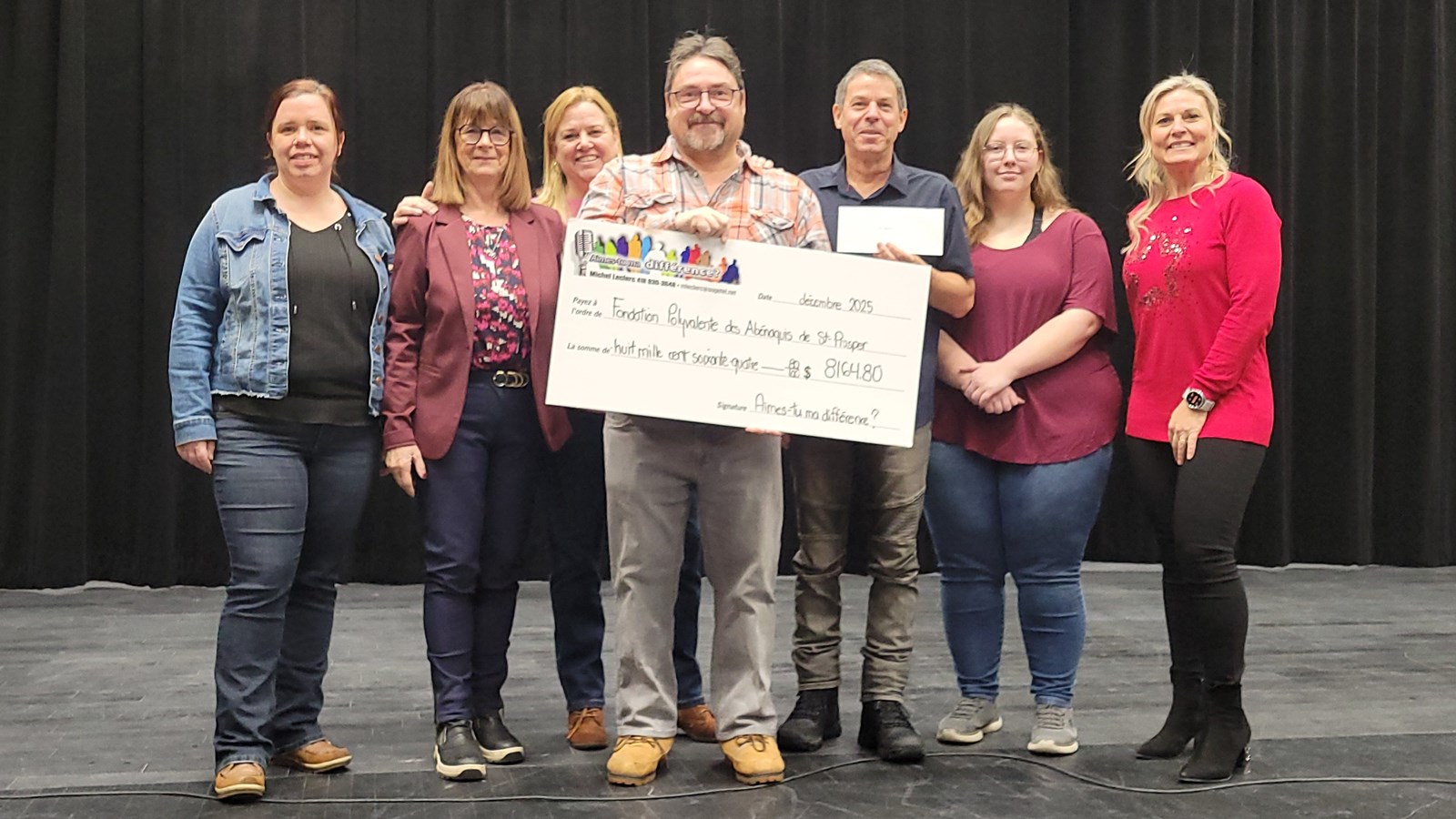 À cela s’ajoute un second don de 8 164,80 $, versé par l’organisme Aimes-tu ma différence?, qui lutte contre l’intimidation et souhaite favoriser l’inclusion au sein du milieu scolaire. Cette somme a été amassée grâce à une série d’activités de financement, dont des spectacles tenus à l’auditorium de la polyvalente en octobre, un bingo, une collecte de canettes et une vente de vin.