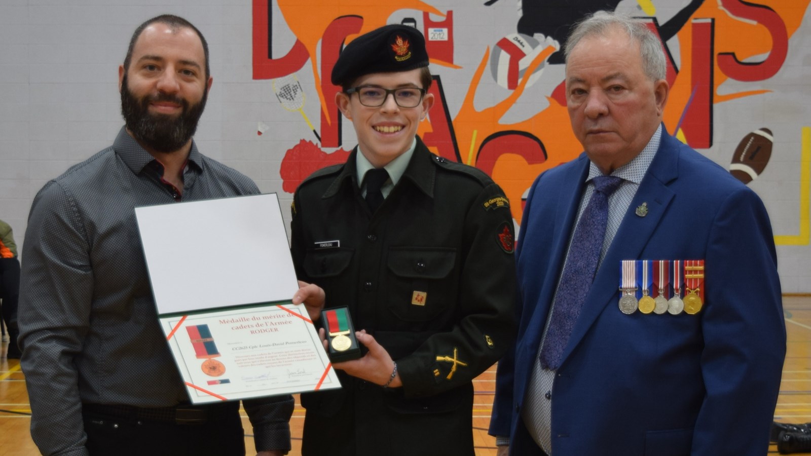 Louis-Philip Gagné, du corps de cadets de Saint-Zacharie, et Louis-David Pomerleau, du corps de cadets de Saint-Georges, ont tous deux reçu la Médaille du mérite du Major-général W.G.L. Rodger.