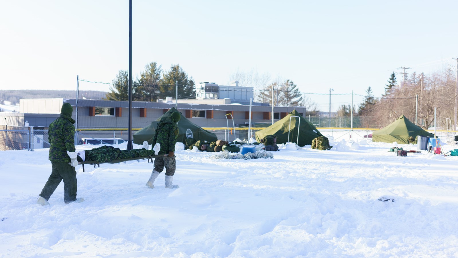 Le Régiment de la Chaudière s’est installé à la Cité sportive Rotary de Beauceville pour un exercice de familiarisation a effectué des tâches militaires en conditions hivernales.