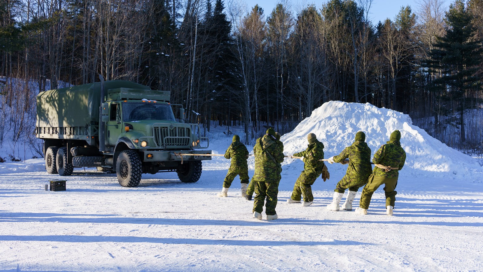 Ce rassemblement se trouve être également une compétition entre les membres du Régiment. Répartis en quatre équipes, ils font différentes étapes d'habiletés et des épreuves physiques par temps froid comme une course de raquette ou de la recherche et du sauvetage de blessé. « C’est une autre difficulté pour effectuer des tâches qu’on est habitué à faire », a précisé la Caporale Andréanne Girard-Lemieux, représentante des Affaires publiques d'unité.