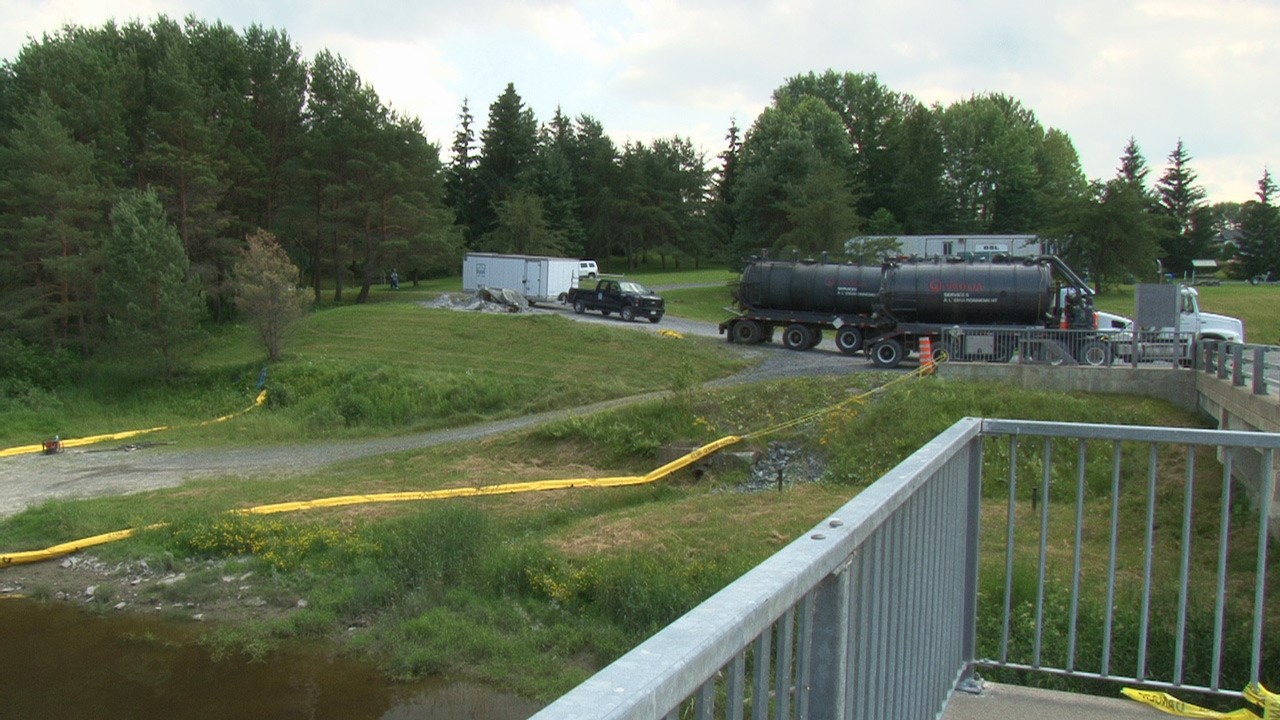 Afin d’accumuler le carburant présent dans la rivière Chaudière, des estacades ont été aménagées au barrage Sartigan. Pour ne pas nuire aux travaux en cours, la Ville de Saint-Georges demande à la population de ne pas se rendre sur les lieux. D’ailleurs, l’accès au barrage Sartigan était déjà interdit au public pour cause de travaux.