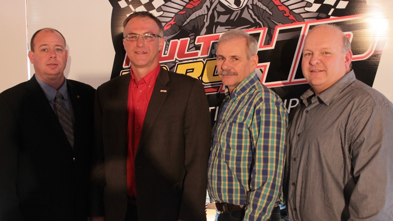 Les quatre investisseurs du Multi-Parc HP Desjardins: Michel Jacques (propriétaire des Salons Funéraires Jacques et Frères), Carl Patoine (président de CFMOTO Canada), Luc Gagnon (propriétaire Le Domaine de La Guadeloupe, Le Ranch Gagnon) ainsi que Michel Bernard (président de Technopaint).