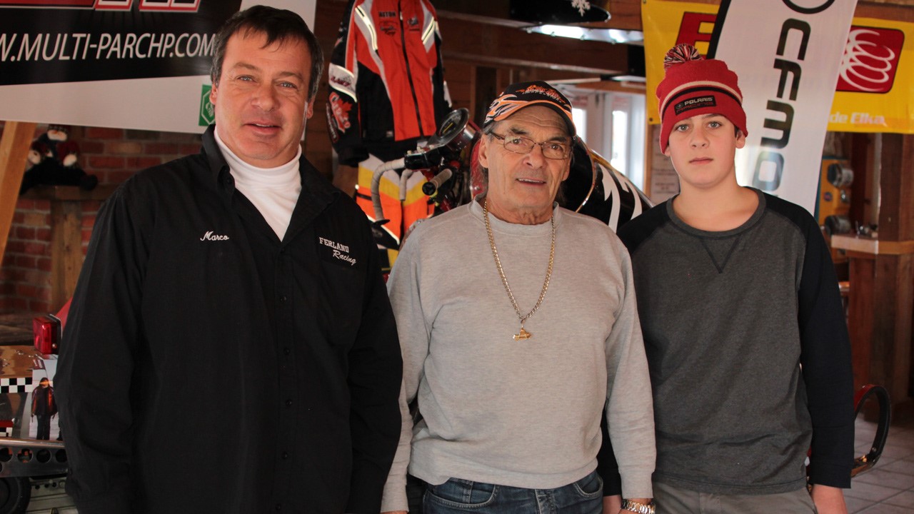 Gaston Ferland (au centre) prendra part au Grand Prix CFMOTO 2014. Pour l'occasion, sa petite-fille Sabrina Blanchette qui est âgée de seulement 16 ans, se mesurera à des coureurs de haut niveau.
