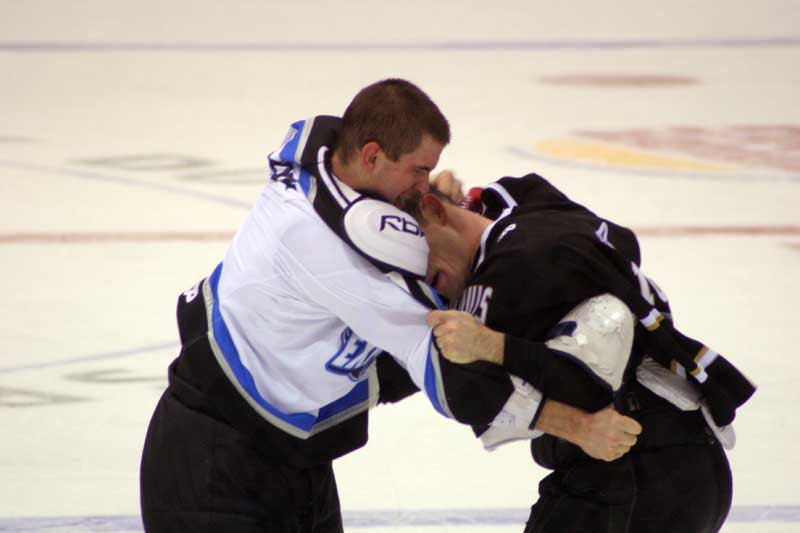 C’est Dan Béland, qui a causé un raz-de-marée de toutous, en inscrivant le premier but des siens. Béland a été bien alimenté par les deux nouveaux venus au sein de la formation soit Brett Beauchamp ainsi que Jean-François Boucher. Par la suite, le défenseur Érick Lajoie, qui n’avait pas encore trouvé le fond du filet cette saison, a enfilé deux buts,en moins de 9 minutes en deuxième, sur des tirs de la ligne bleue. Kevin Cloutier a connu une autre excellente soirée de travail inscrivant le 4e but des siens, lui qui avait préalablement obtenu deux mentions d’aide dans ce match.