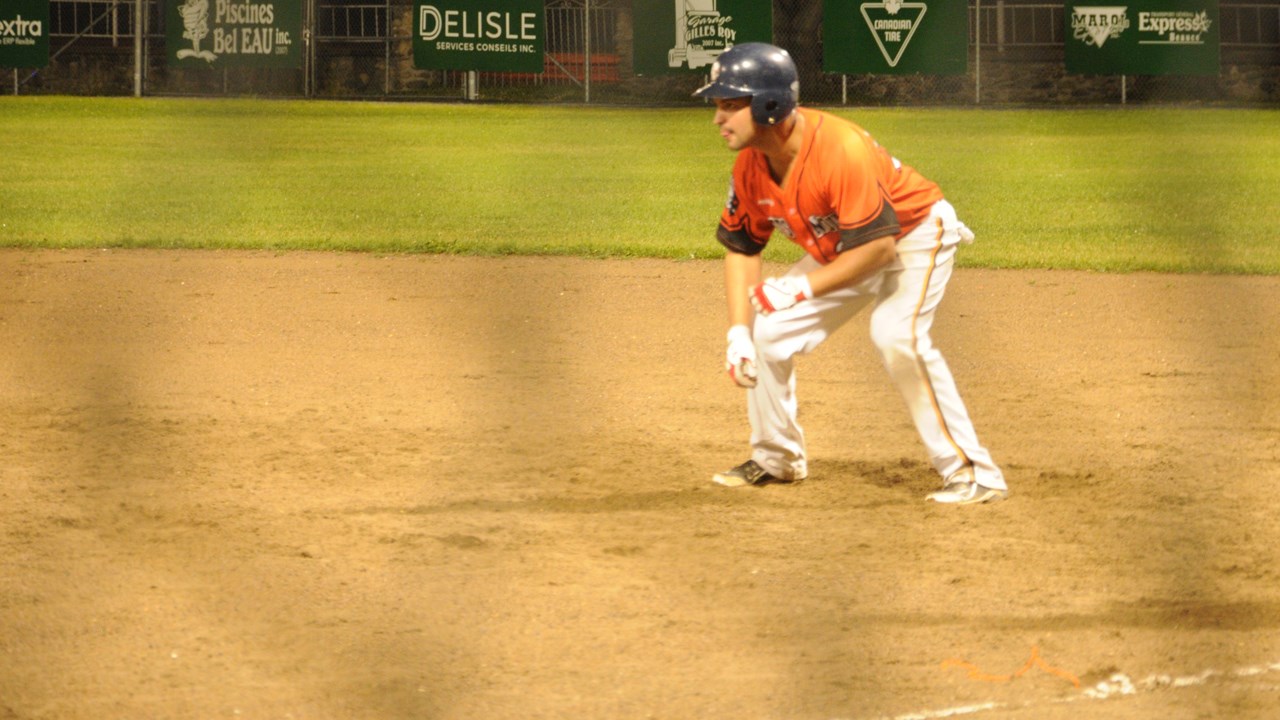 Lorsque les locaux sont retournés au bâton, Marc-Antoine Perron-Rousseau a été atteint par un lancer, ce qui lui a permis de se rendre au premier coussin. Il a ensuite tenté de voler le deuxième but, mais il a hésité à mi-chemin. Il semblait pris en souricière, mais un mauvais lui a permis de se rendre jusqu’au troisième but.
