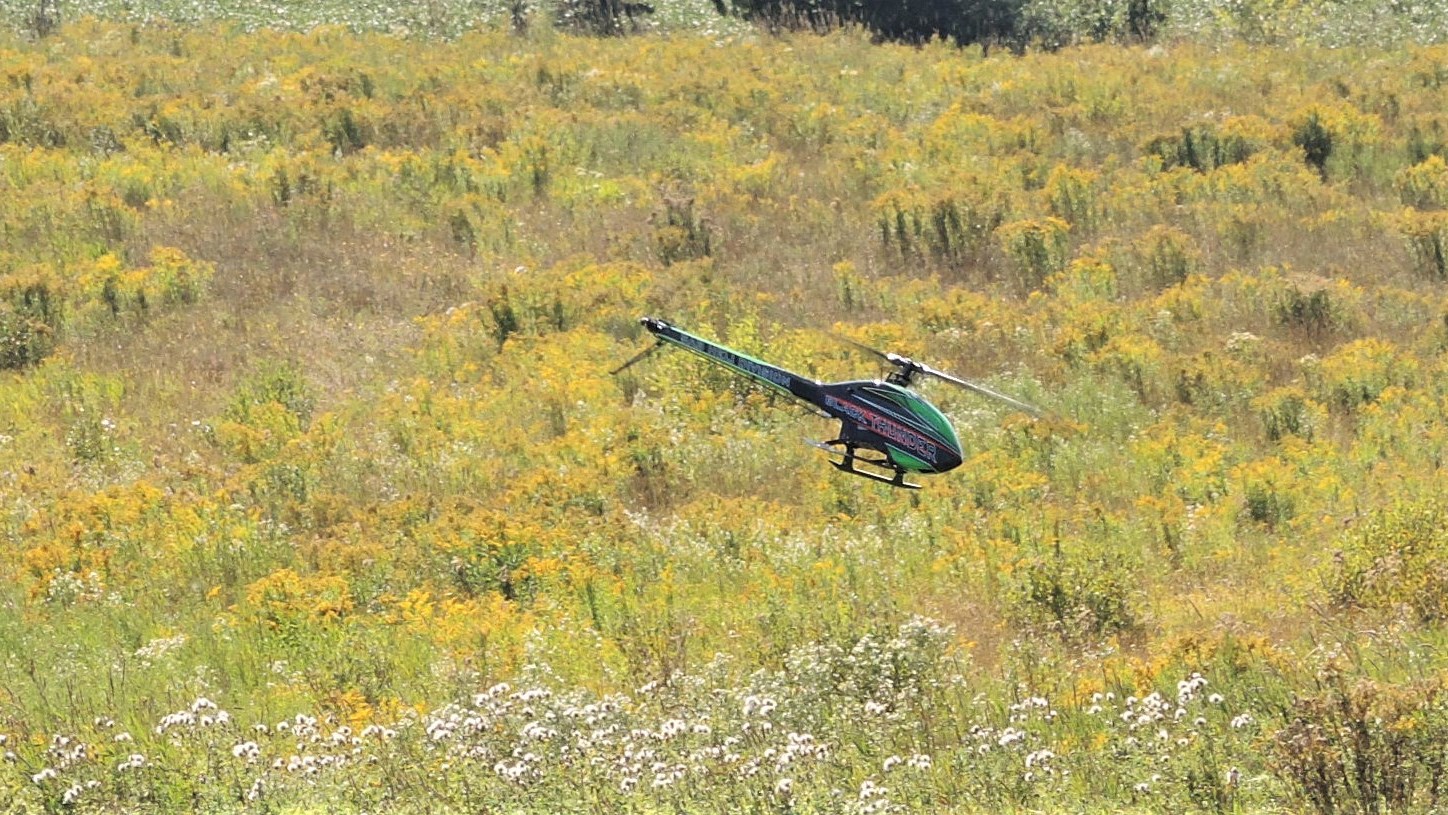 S'en est suivie la prestation du jeune Kevin St-Cyr de Kingsey Falls, âgé de 15 ans seulement, qui a fait voler son hélicoptère vers 14 h 15.