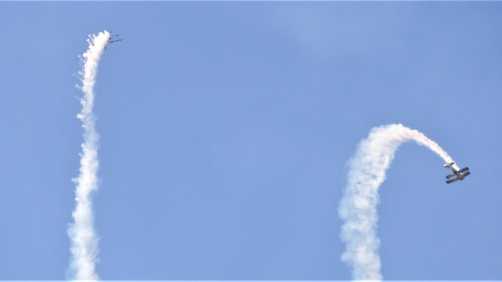 Les pilotes Jean-François Dubé et Daniel Chevalier se sont ensuite présentés en duo vers 14 h 25, et ont fait voler leurs deux avions identiques en formation.
