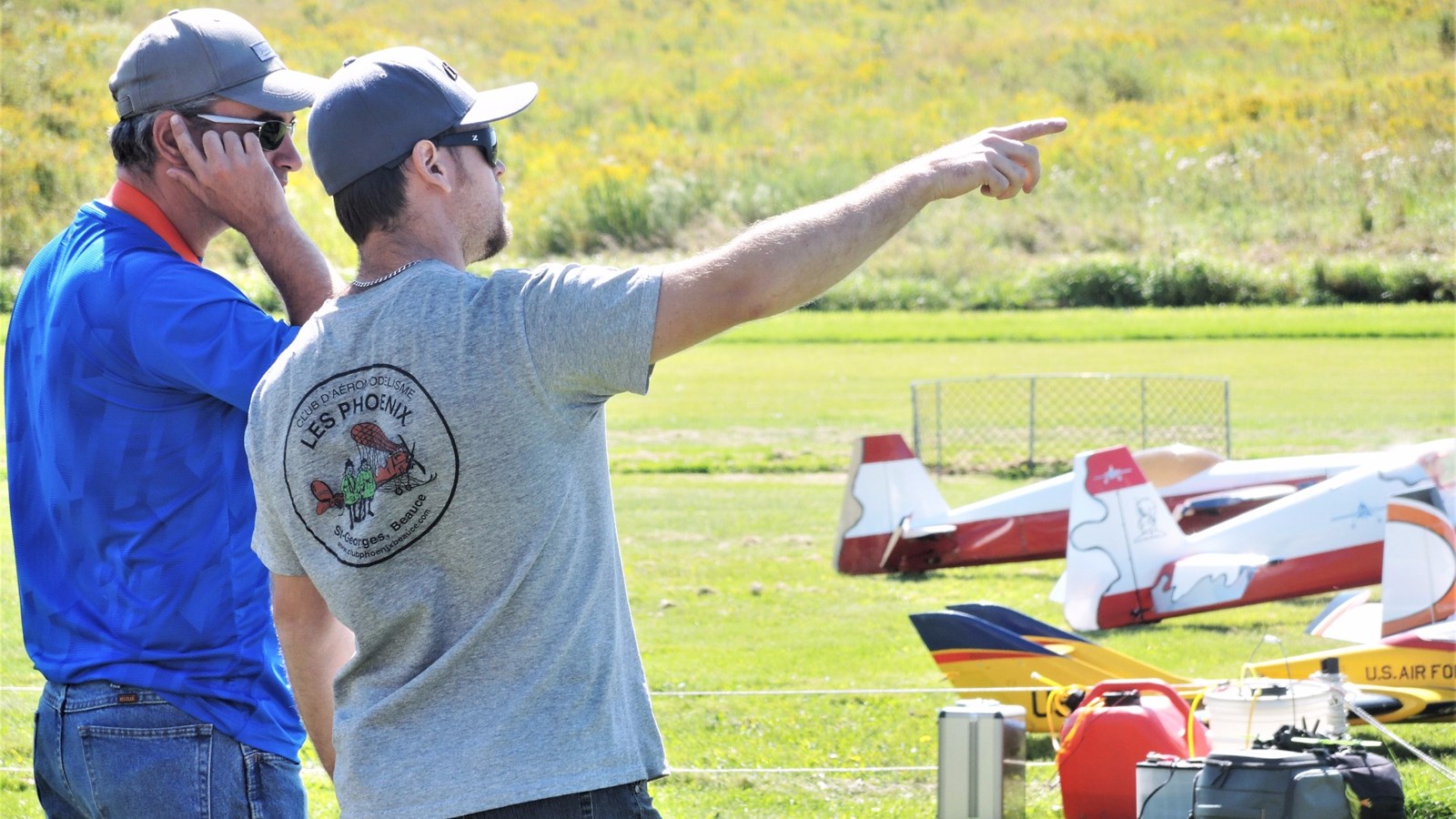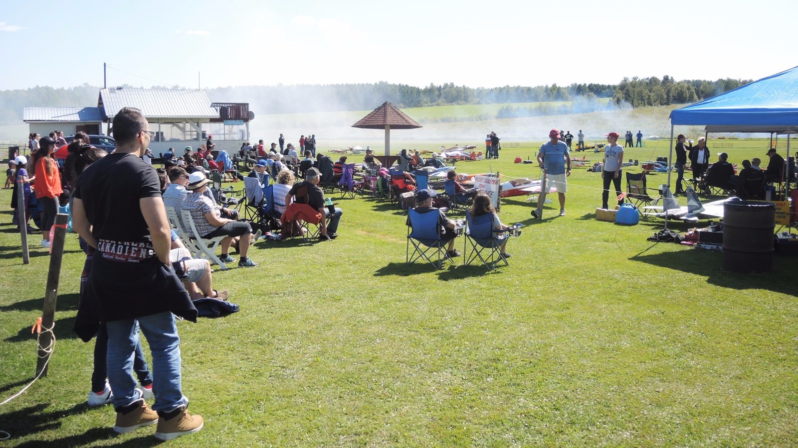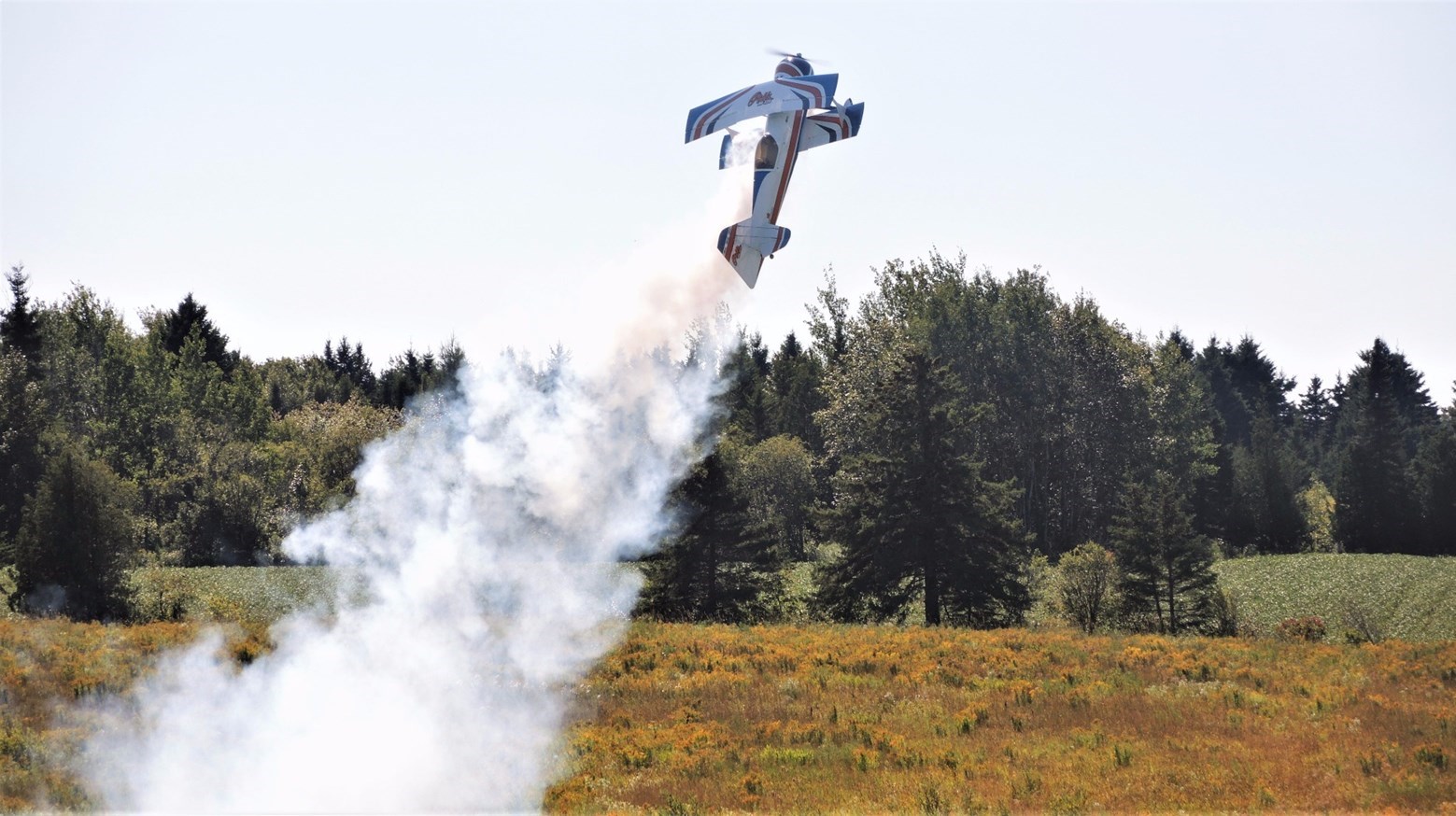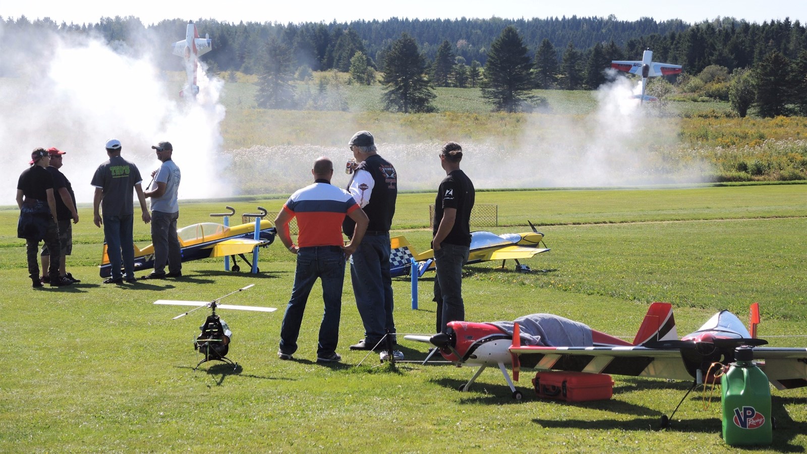 Cet après-midi, plusieurs démonstrations avaient lieu. À 14 h 10 notamment, Claude Vallières et sa conjointe Louise, tous deux originaires de Deux-Montagnes, ont fait une démonstration d'avion acrobatique devant le public