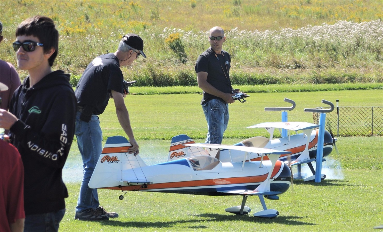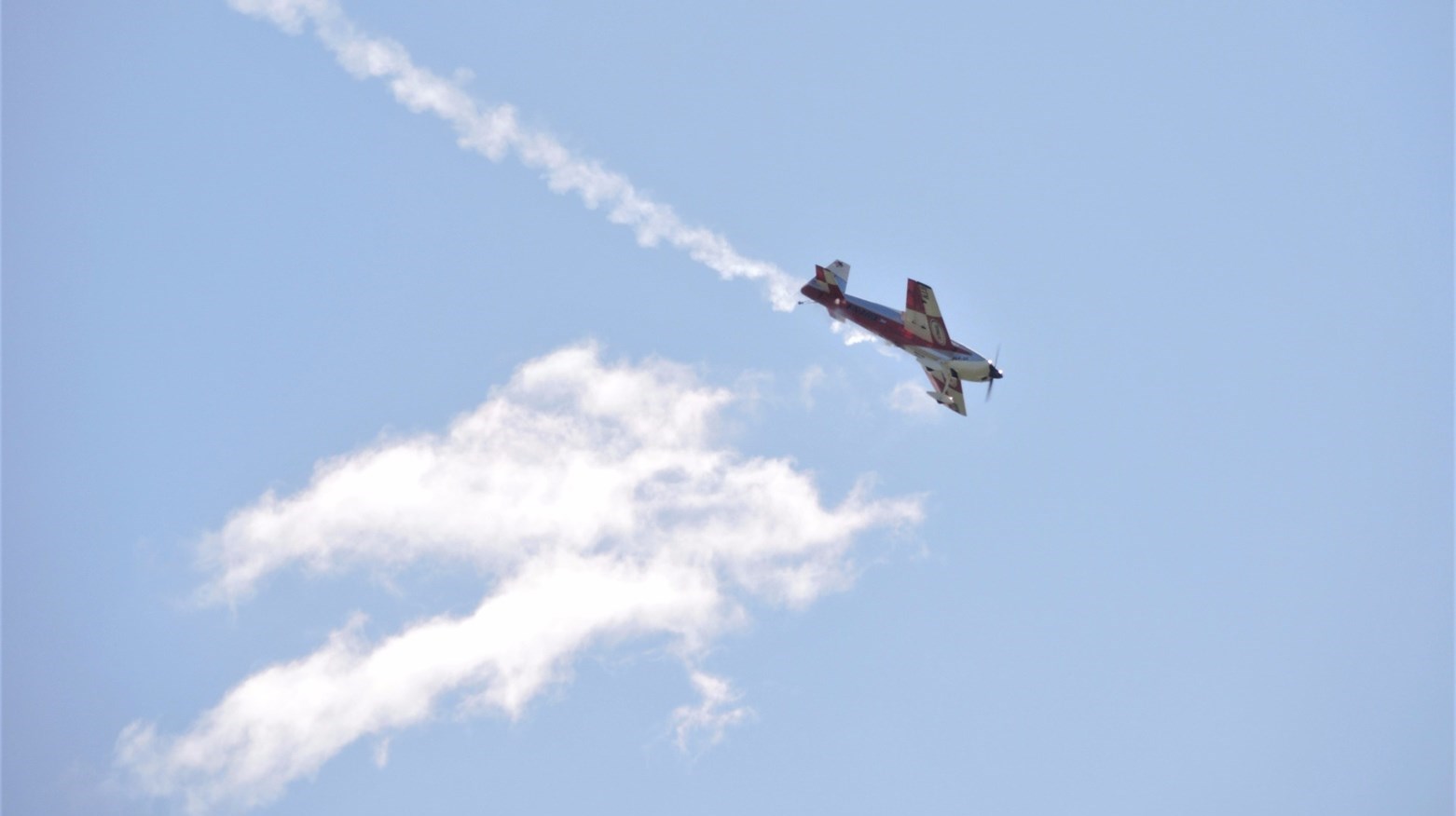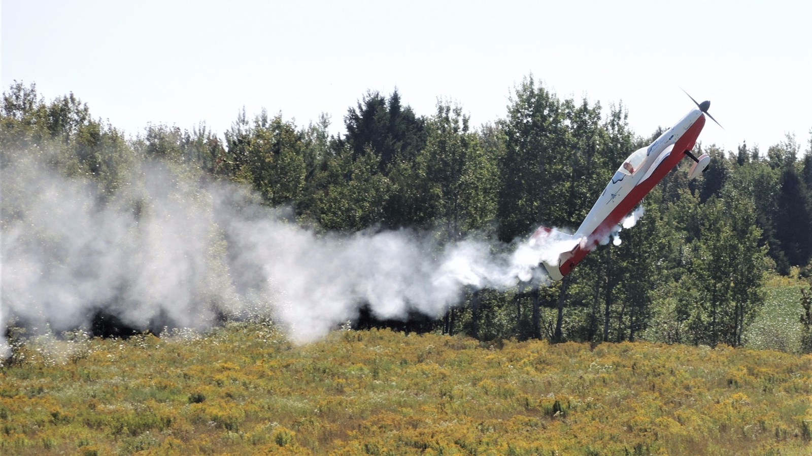 Cet après-midi, plusieurs démonstrations avaient lieu. À 14 h 10 notamment, Claude Vallières et sa conjointe Louise, tous deux originaires de Deux-Montagnes, ont fait une démonstration d'avion acrobatique devant le public