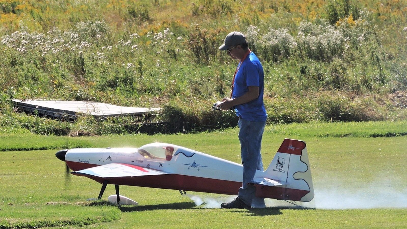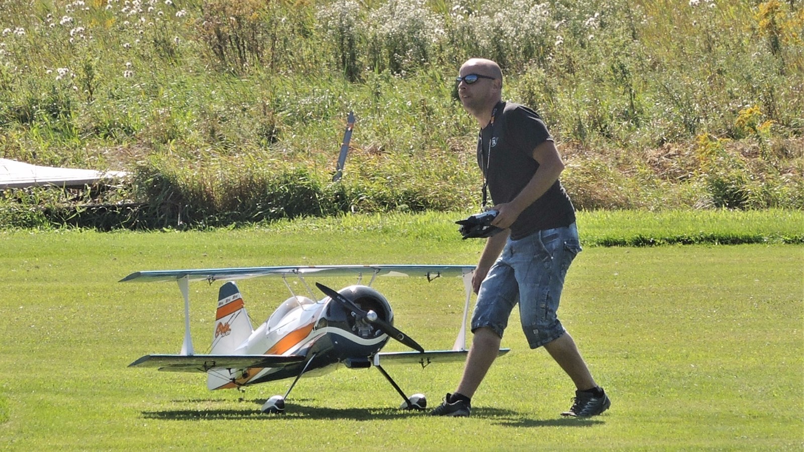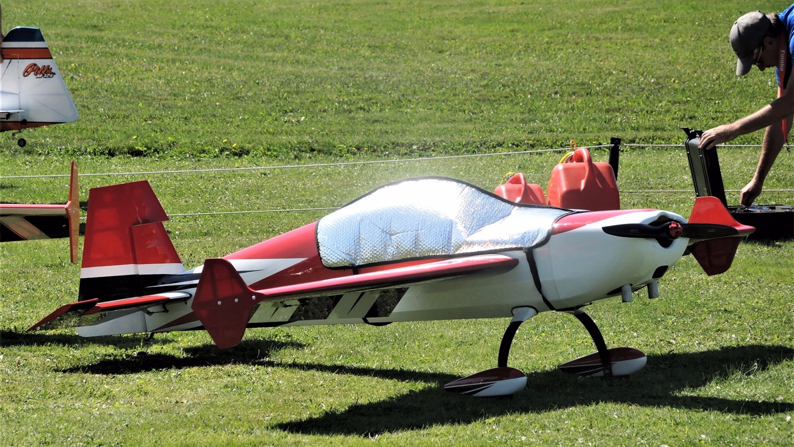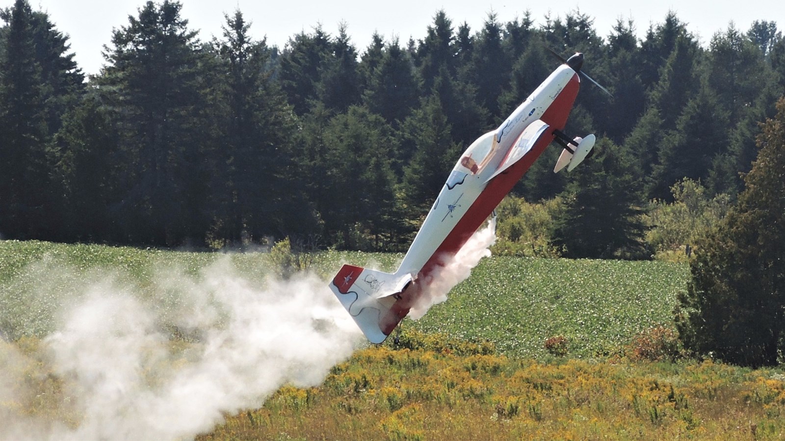 Cet après-midi, plusieurs démonstrations avaient lieu. À 14 h 10 notamment, Claude Vallières et sa conjointe Louise, tous deux originaires de Deux-Montagnes, ont fait une démonstration d'avion acrobatique devant le public