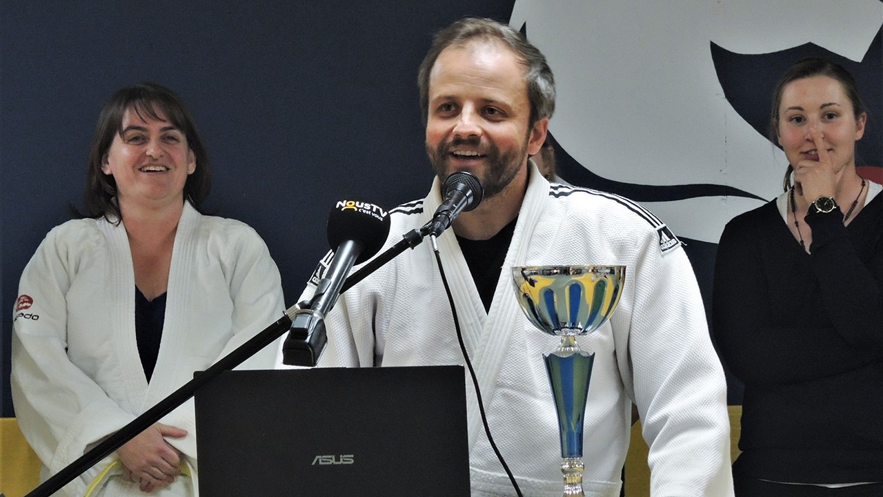 L'entraîneur et directeur technique du Club de judo St-Georges, Martin Beaulieu, lors de l'inauguration officielle des nouveaux locaux.