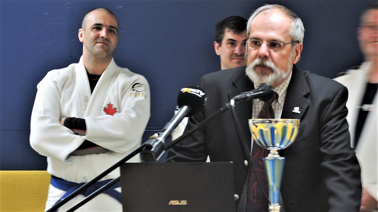 Le maire de la Ville de Saint-Georges, Claude Morin, lors de l'inauguration officielle du nouveau dojo su Club de judo St-Georges.