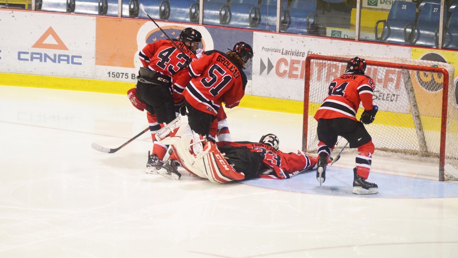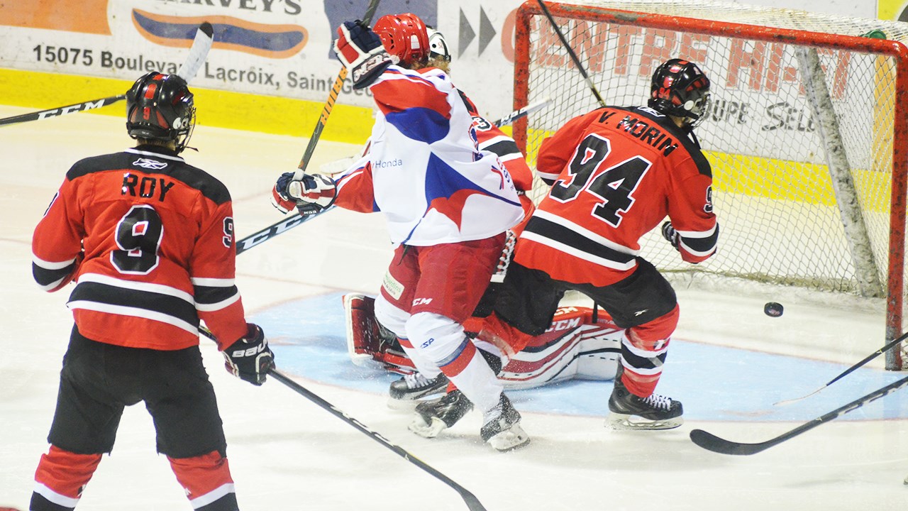 Après 20 minutes de jeu, les visiteurs avaient les devants 2 à 1. Frédéric Michaud a inscrit le but des locaux tandis que Cédric Poulin a fait de même lors de la période suivante.