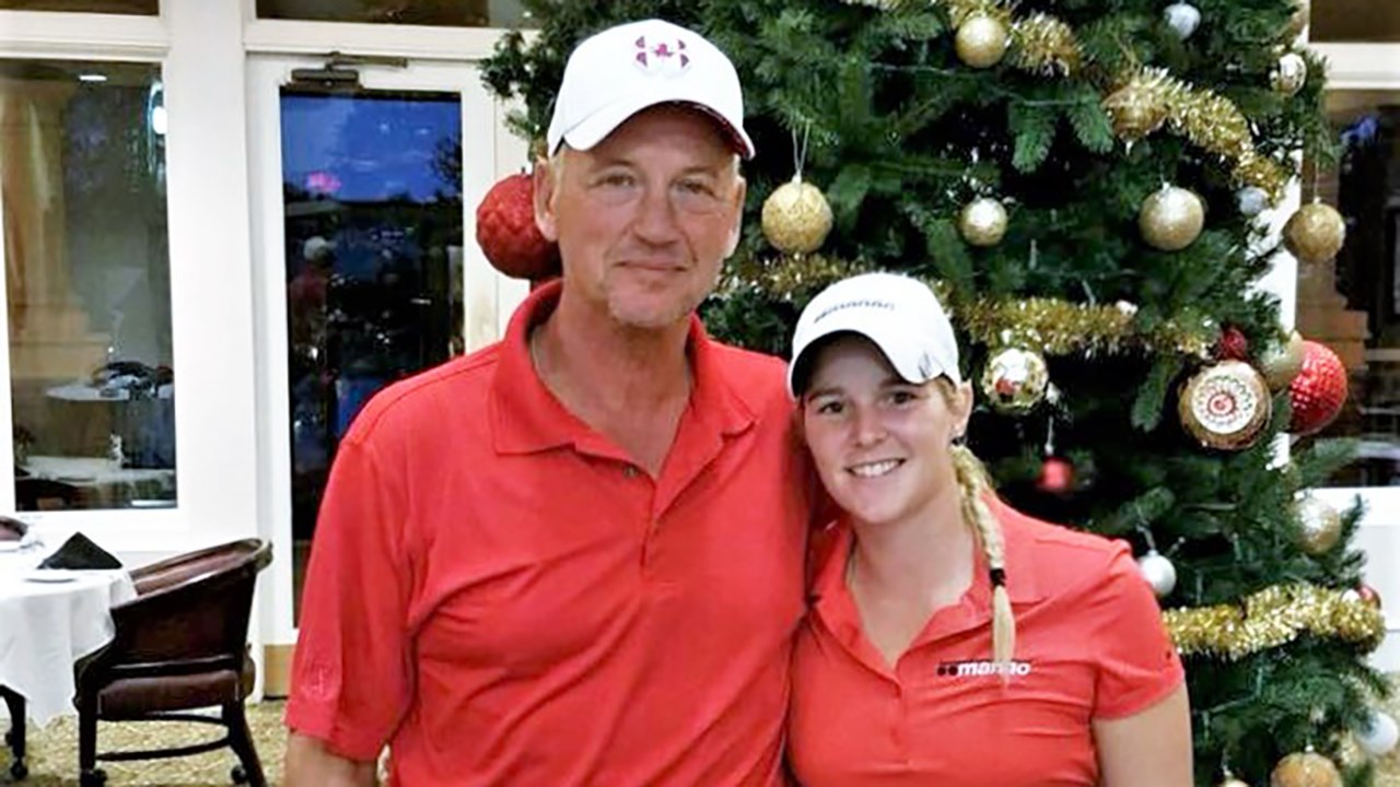 La golfeuse georgienne Josée Doyon, accompagnée de son entraîneur en Ohio, Mitch Blake.