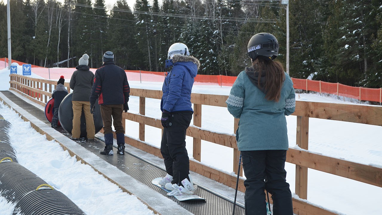Ledit tapis servira de remontée pour sa pente-école ainsi que pour les amateurs de glissades sur chambre à air. D’une longueur de 91 mètres (300 pieds), le tapis peut déplacer 45 personnes simultanément et se déplace à une vitesse de 0,7 mètre à la seconde.