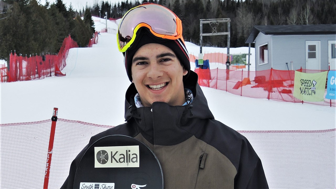 C'est à la montagne sur laquelle il s'entraîne depuis toujours, le Mont-Orignal de Lac-Etchemin, que nous l'avons retrouvé jeudi après-midi dernier. Éliot Grondin était sur place à l'occasion de la Coupe nord-américaine de snowboard cross, présentée par Canada Snowboard en collaboration avec l’Association Québec Snowboard, qui avait lieu du 21 au 23 février.