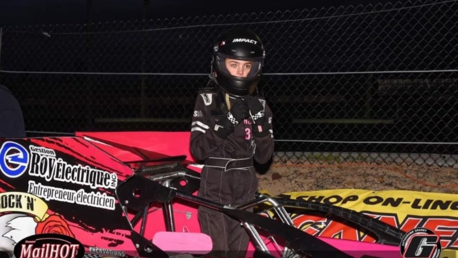 La pilote de 11 ans a roulé pour la première fois sur une piste de terre battue à la Série canadienne. Lorsqu’ils sont arrivés sur la piste, elle a fait dix tours pour s’habituer. Son père, Tommy Grondin, qui l’accompagne partout était très fier et heureux de la performance de sa fille.