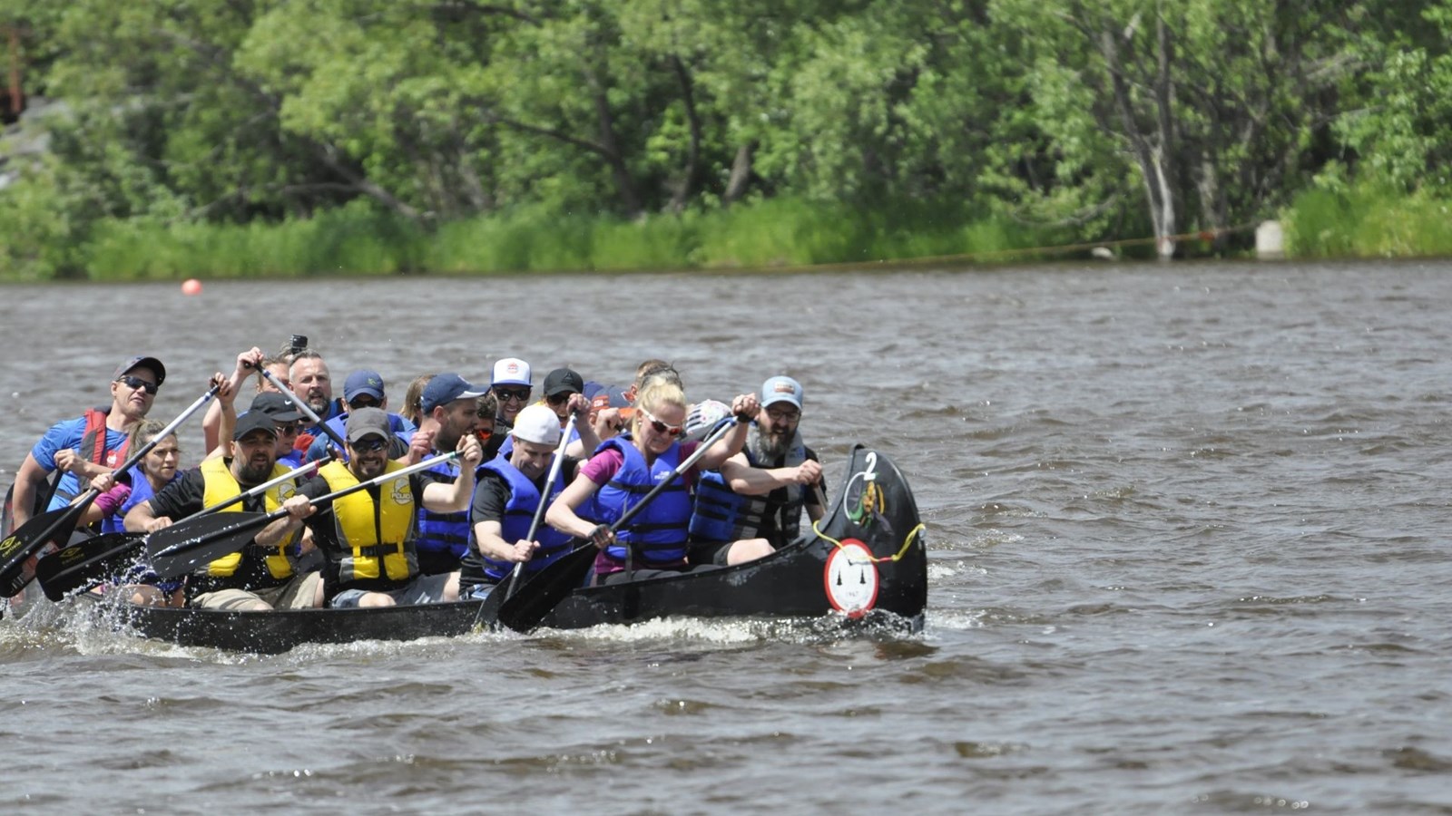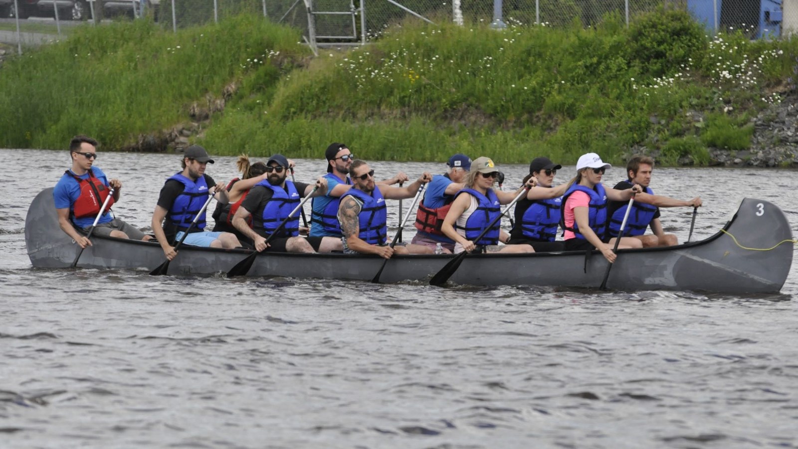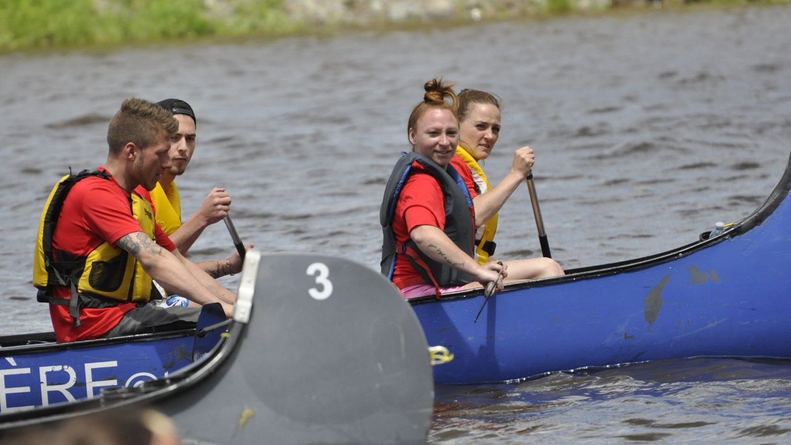 Ainsi, ce samedi 22 juin treize équipes se sont affrontées dans une compétition amicale sur la rivière Chaudière entre les deux passerelles de Saint-Georges. L’évènement était organisé par le club de canotage Drakkar de Beauce. Chacune des équipes devait participer à trois courses à obstacles pour se classer en finale.