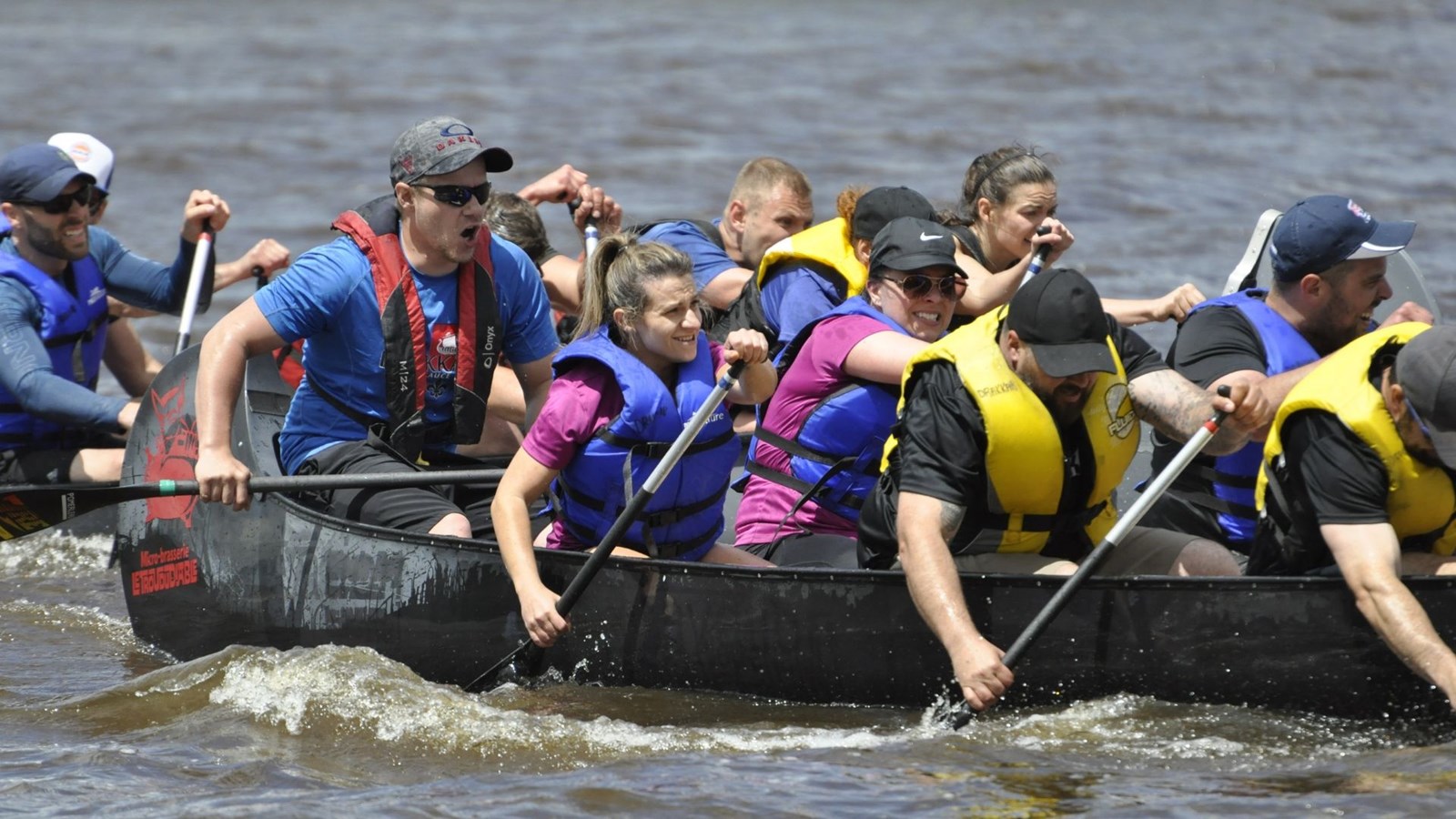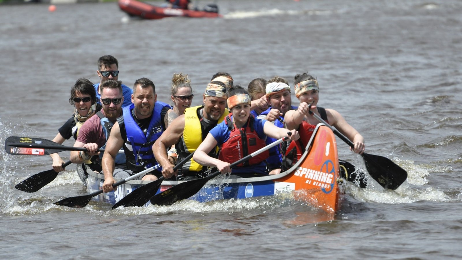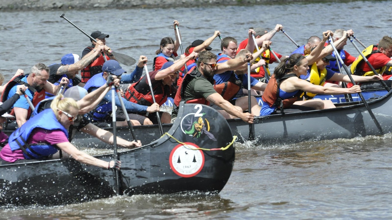 Ainsi, ce samedi 22 juin treize équipes se sont affrontées dans une compétition amicale sur la rivière Chaudière entre les deux passerelles de Saint-Georges. L’évènement était organisé par le club de canotage Drakkar de Beauce. Chacune des équipes devait participer à trois courses à obstacles pour se classer en finale.