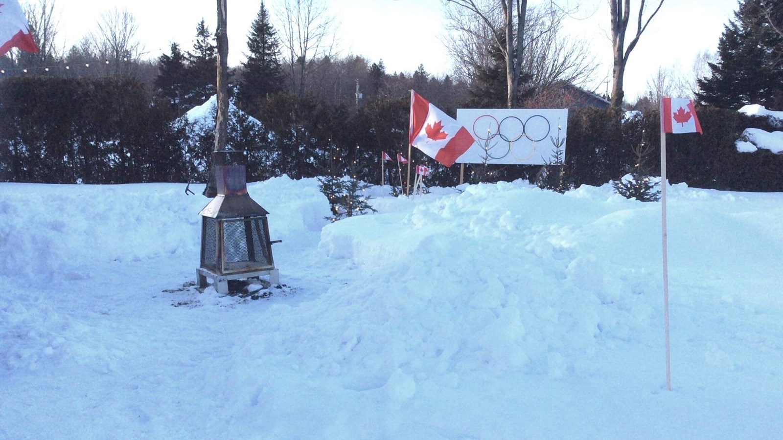 À l'extérieur, on a aussi aménagé un espace olympique avec les anneaux ainsi que le drapeau du Canada. Un foyer permettra de réchauffer celles et ceux qui voudront festoyer au grand air et célébrer, espérons-le, la victoire de l'équipe nationale.