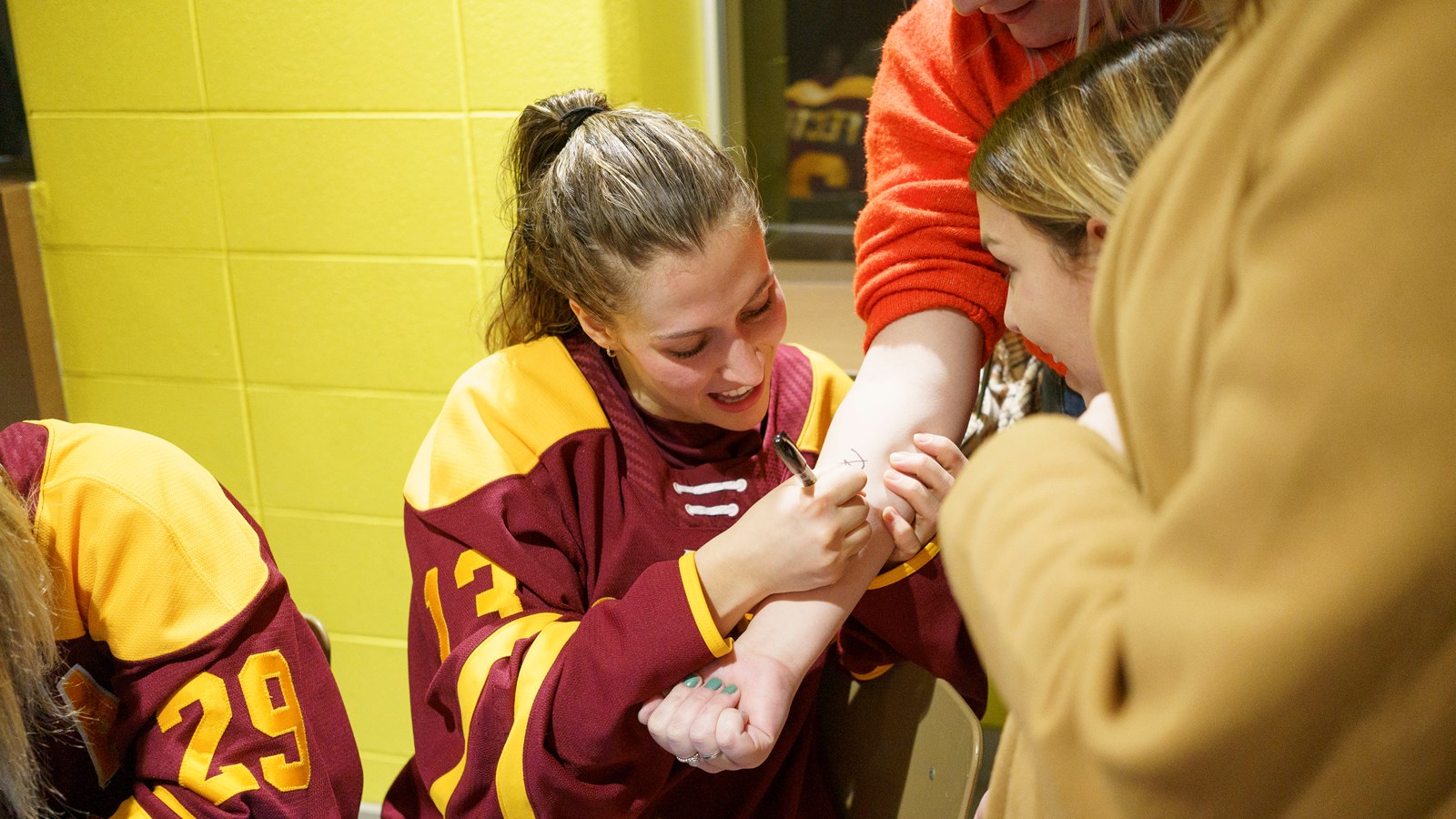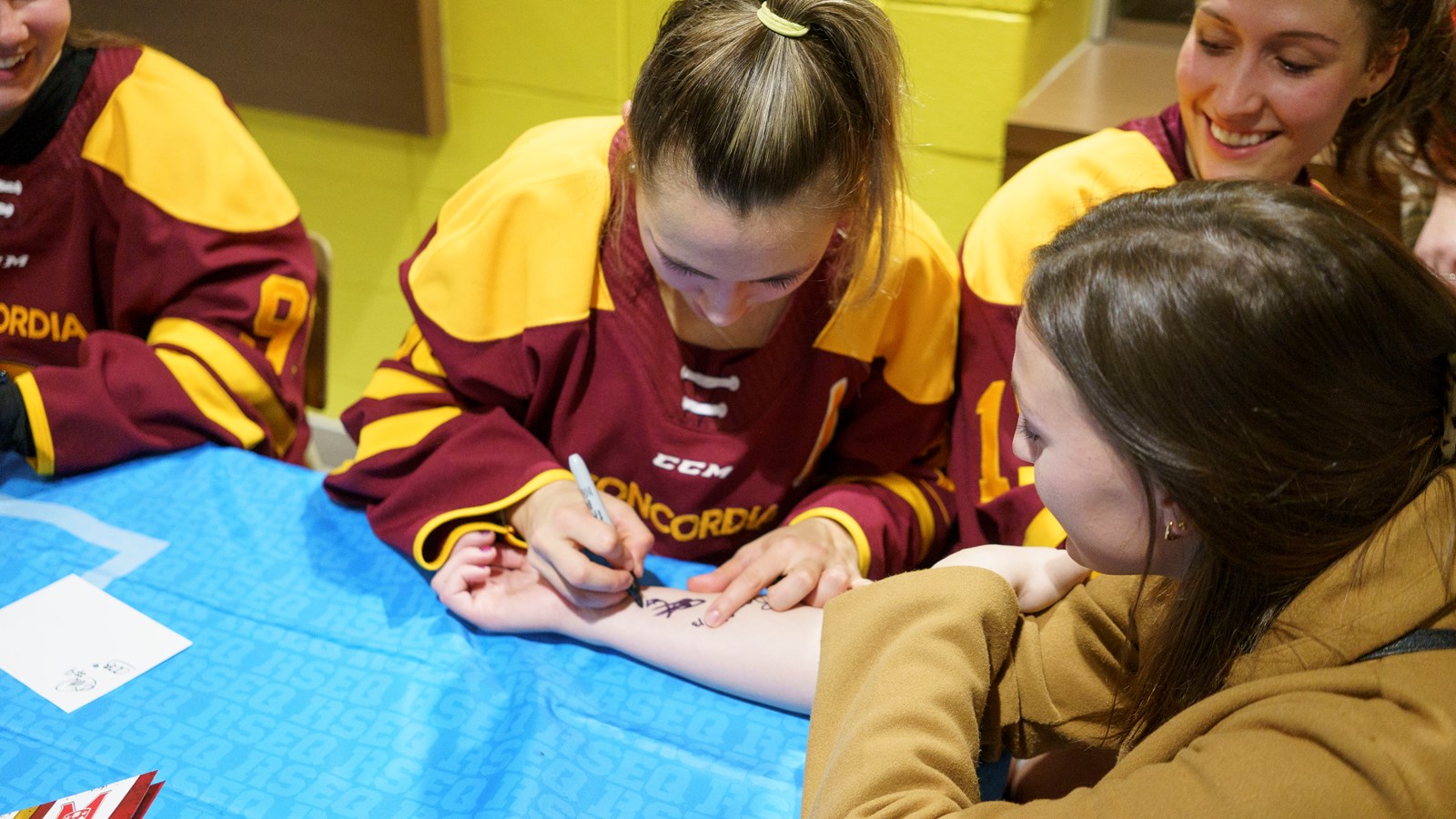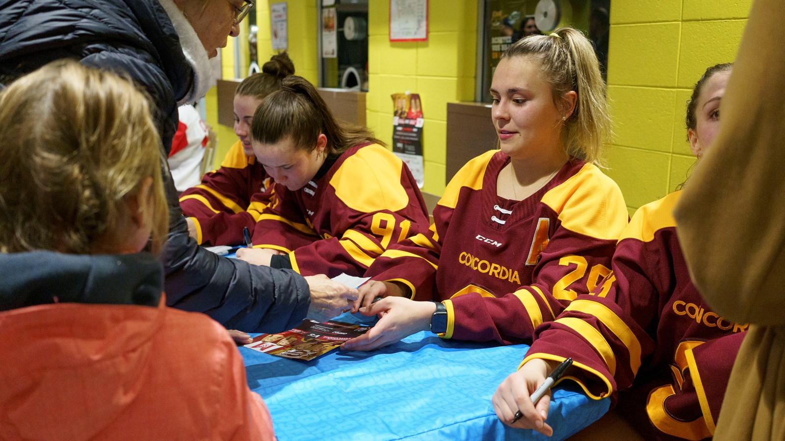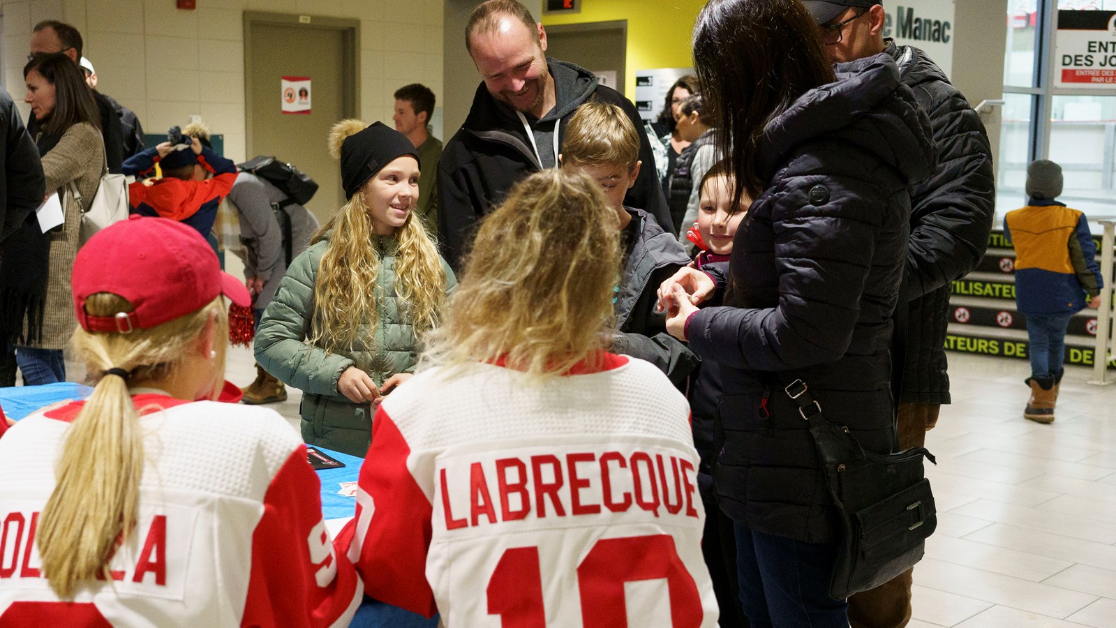 Quelques années en arrière, Rosalie, Marika et Emmy venaient faire signer des autographes à Marie-Philip Poulin et aujourd'hui, ce sont elles qui se trouvent de l'autre côté de la table.