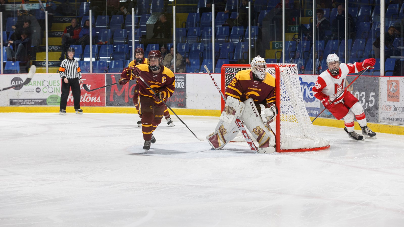 Plus de 600 personnes ont assisté au match qui opposait les Stingers de l'Université Concordia aux Martlets de l'Université McGill, hier soir au centre sportif Lacroix-Dutil de Saint-Georges.