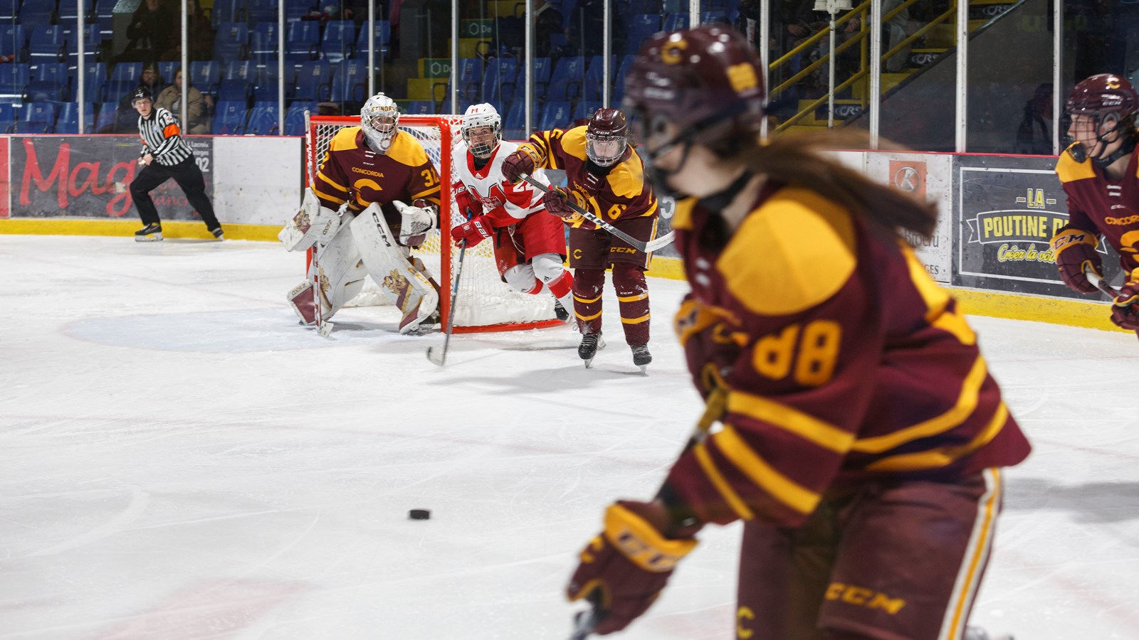 Il s'agissait d'une partie de saison régulière de la ligue de hockey universitaire féminine RSEQ, jouée dans le cadre du Tournoi de hockey féminin (THF) Saint-Georges.